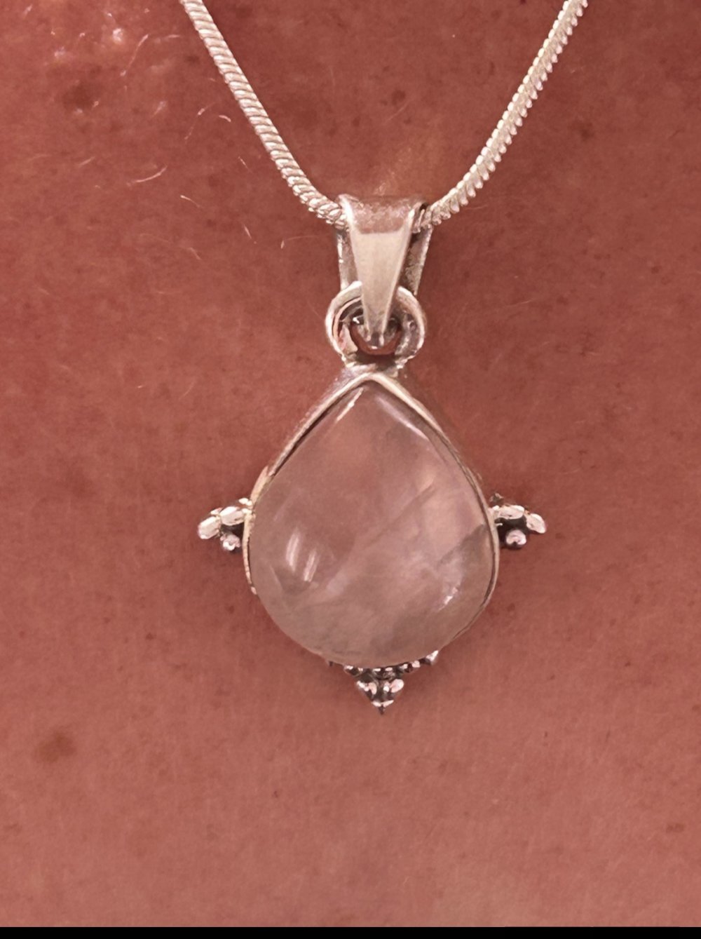 Collier en Quartz Rose & Chaîne en Acier – Douceur au Quotidien