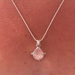 Ce collier associe la beauté naturelle du quartz rose à la sobriété d’une chaîne en acier inoxydable. La pierre, douce et délicatement rosée, est montée de façon simple pour mettre en valeur sa forme et ses nuances uniques. Un bijou à porter tous les jours, seul ou en superposition.