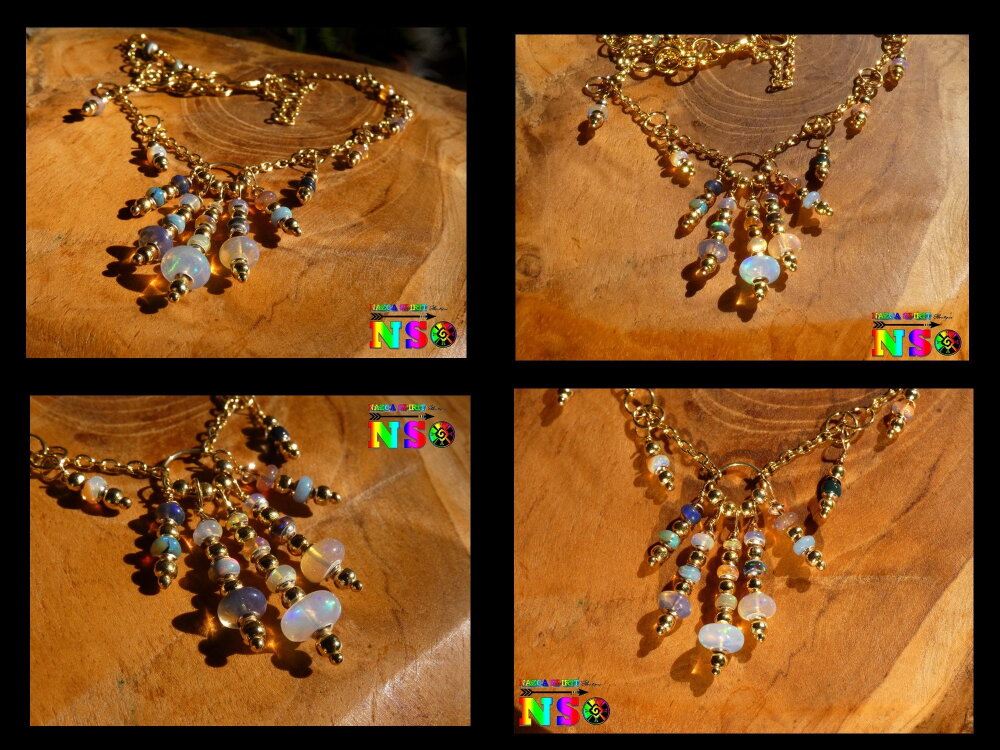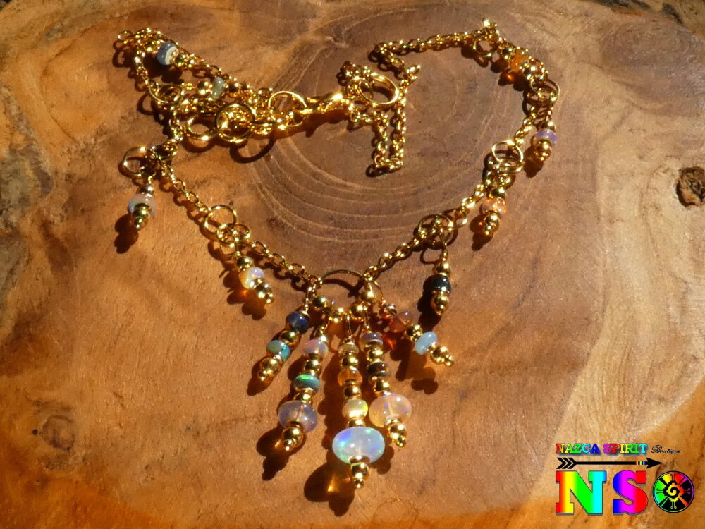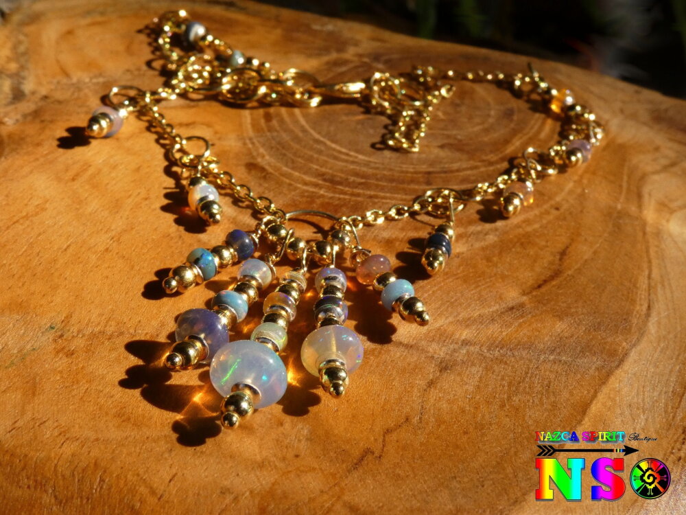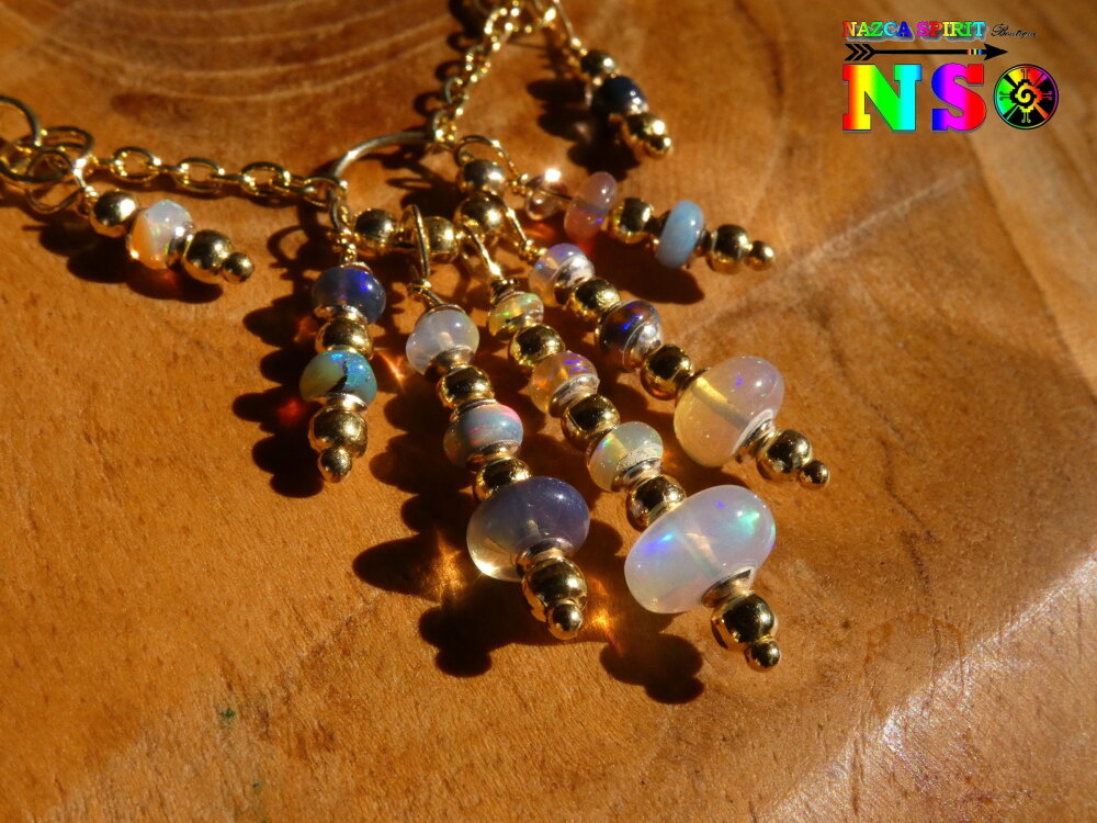 Matériaux : laiton plaqué or 18k, opales multicolores (Origine : Ethiopie)
