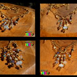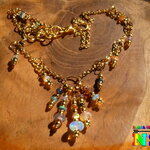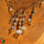 Au centre du collier j'ai relié un pendant monté intégralement à la main. Ce pendant mesure 4.2 cm de long x 2.5 cm de large. Il est composé de 5 petits pendants.