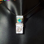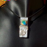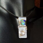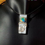 Afin d'apporter du relief à mon pendentif, j'ai procédé au martelage d'une partie de ma plaque d'argent. J'ai ensuite ajouté un fil d'argent travaillé en spirale pour apporter une note originale à mon bijou.