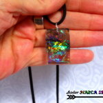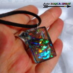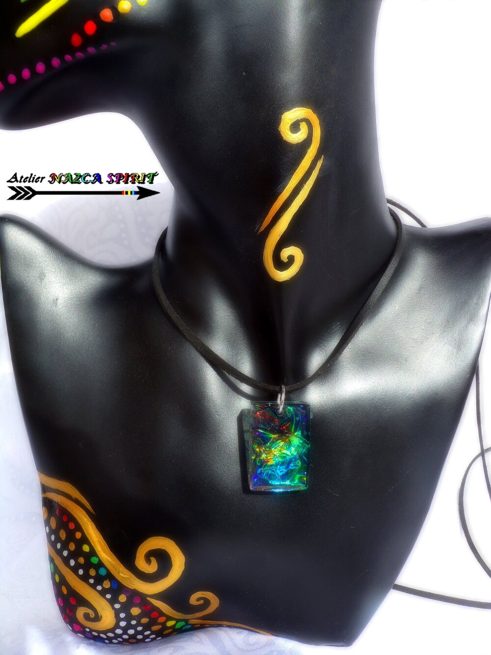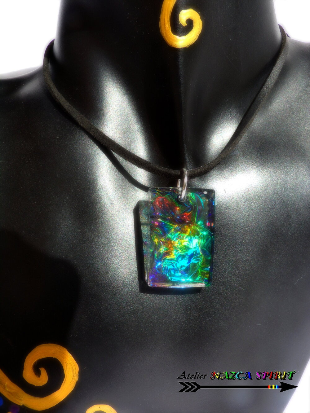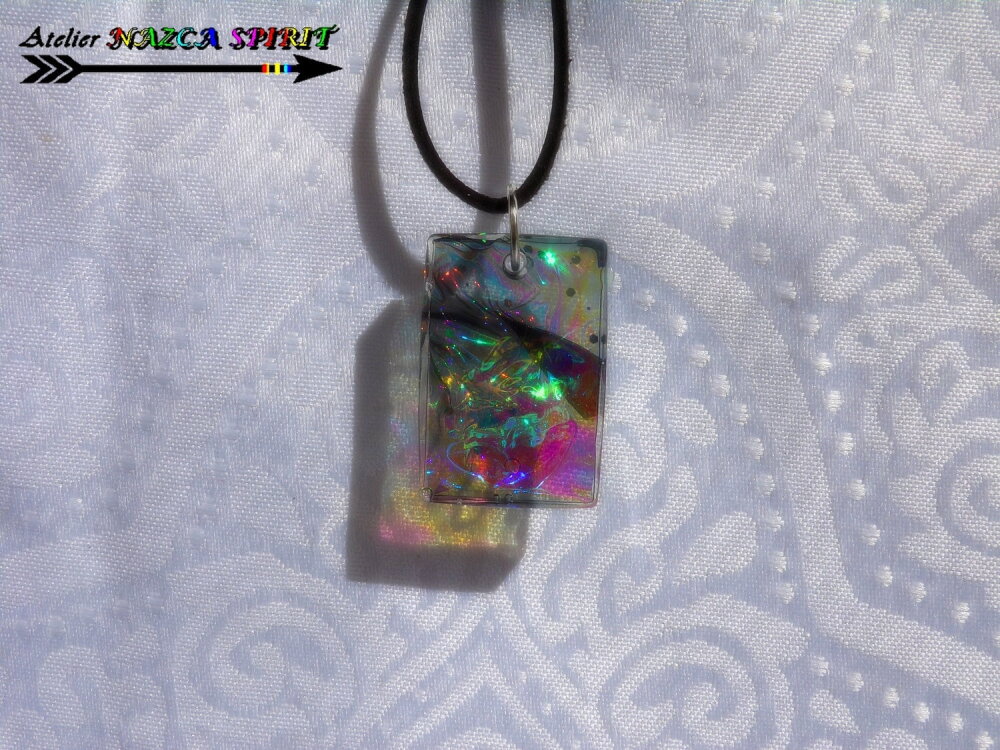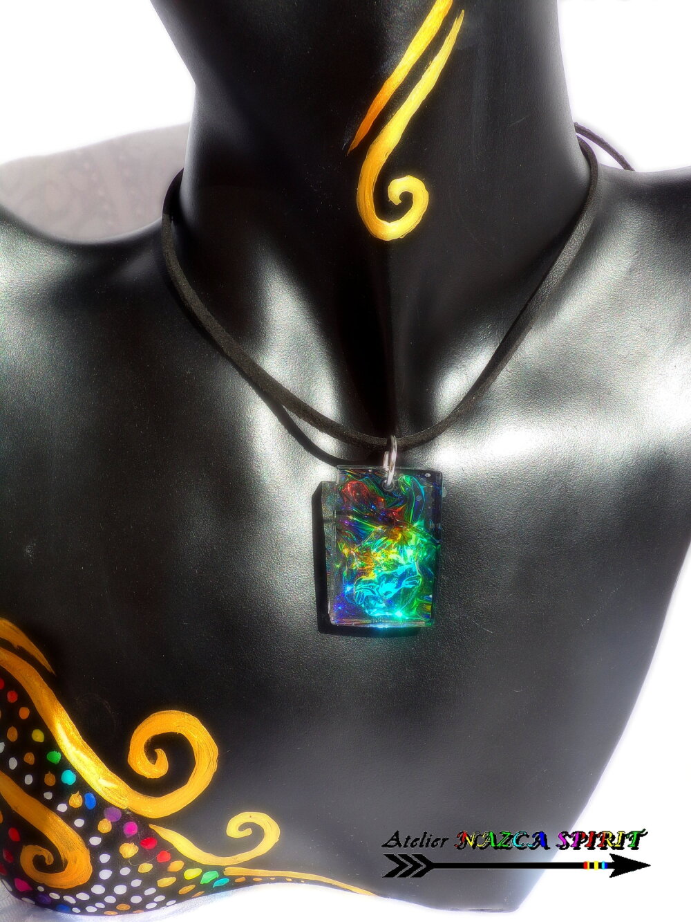 Collier Réglable Bohème Chic / Suédine Effet Cuir / Pendentif Handmade / Rectangle Résine / Multicolore Iridescent /Effet Opale Australienne