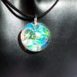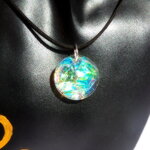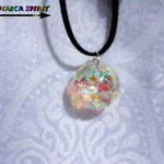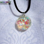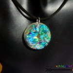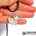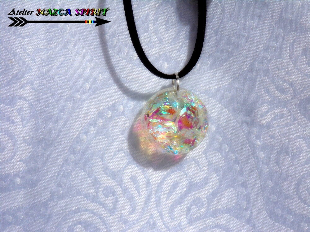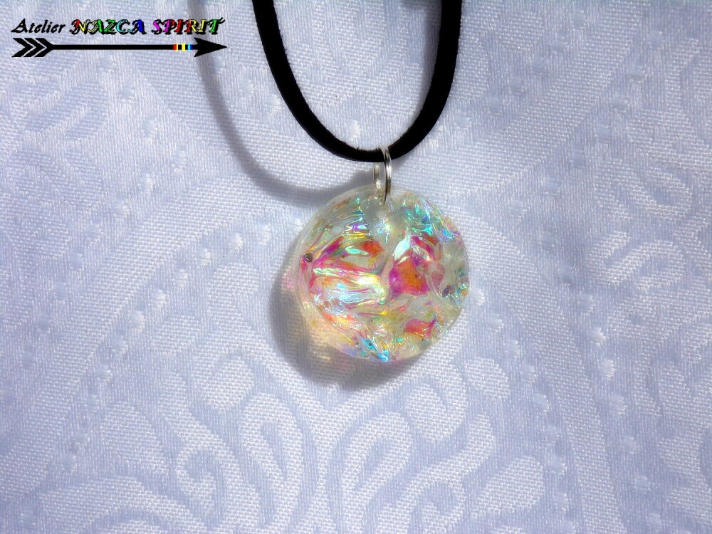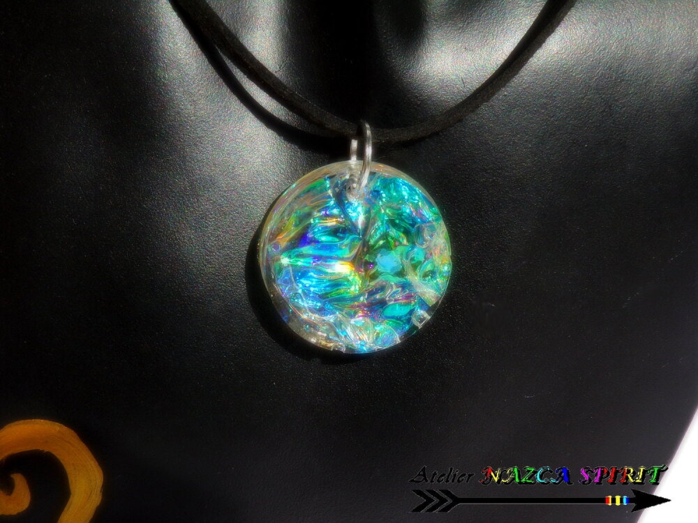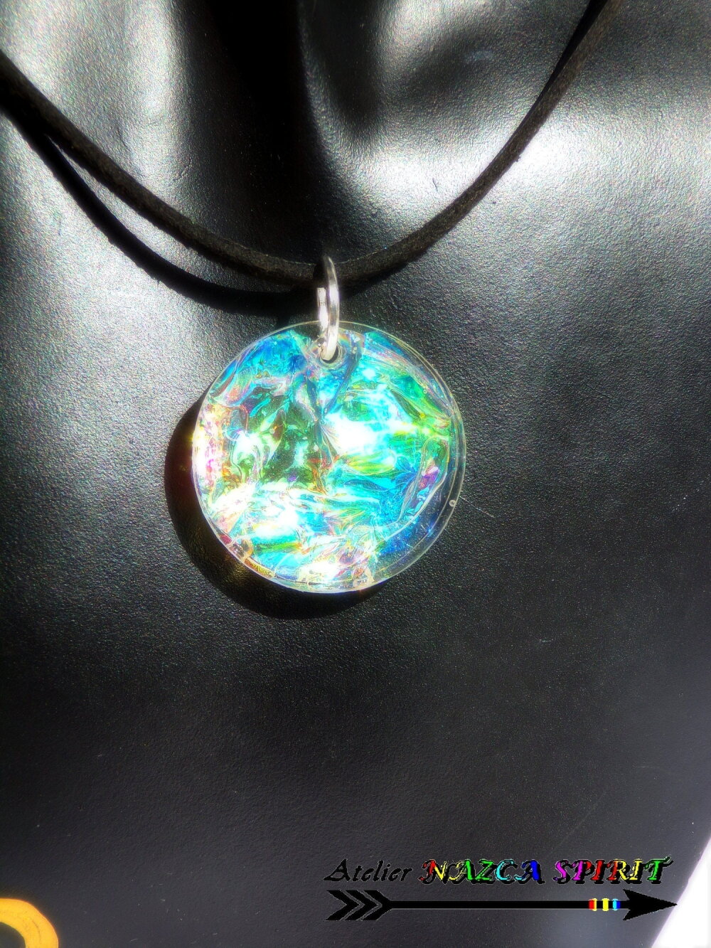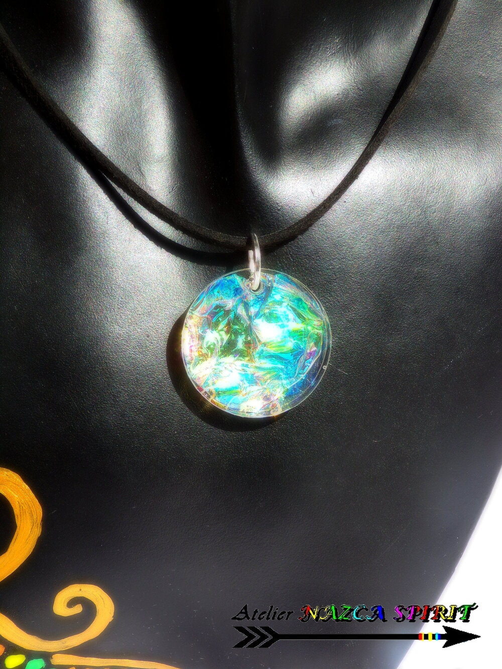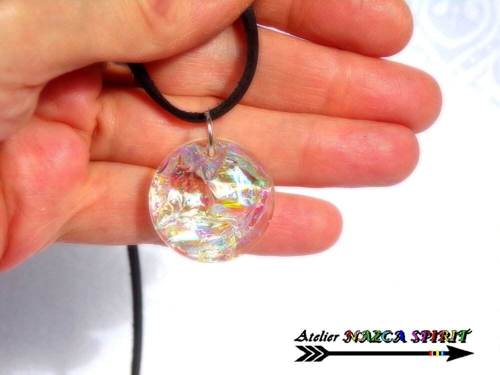Collier Réglable Bohème Chic / Suédine Effet Cuir / Pendentif Handmade / Rond Résine / Multicolore Iridescent /Effet Opale Australienne