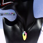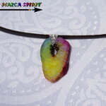 J'ai réalisé ce Superbe collier réglable d'inspiration ethnique à partir d'un lacet suédine noir effet cuir, d'une superbe bélière ciselée en argent 925 et d'une tranche de cristal Solar Quartz teinté pour réaliser mon pendentif.