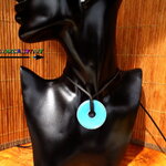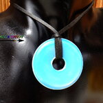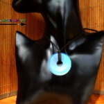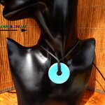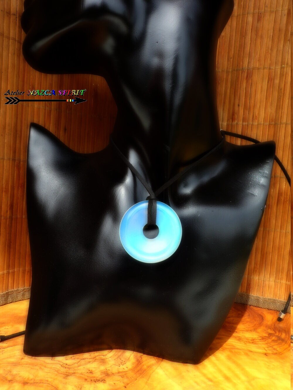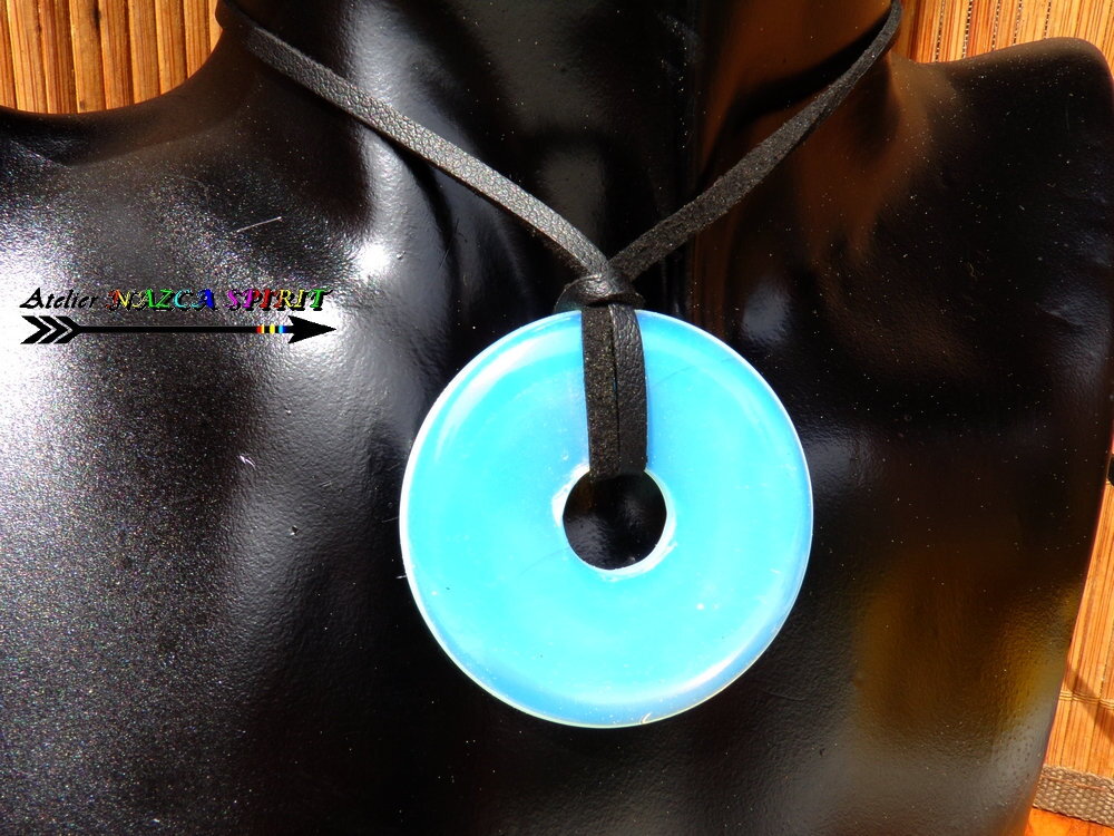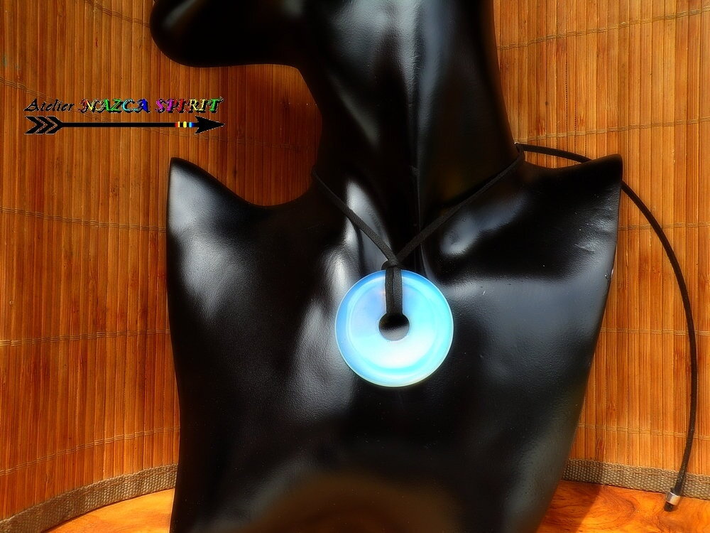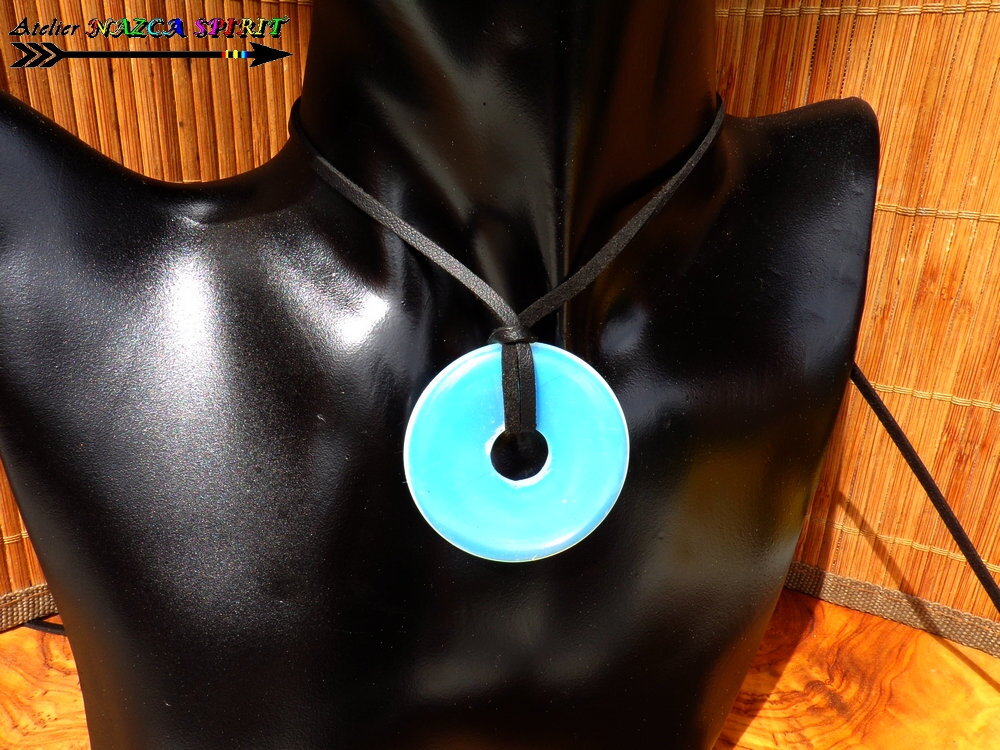 Collier réglable / tour de cou suédine effet cuir noir / pendentif disque / donut pi opaline