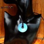 Collier Réglable / Tour de cou Suédine Effet Cuir Noir / Pendentif Disque / Donut Pi Opaline