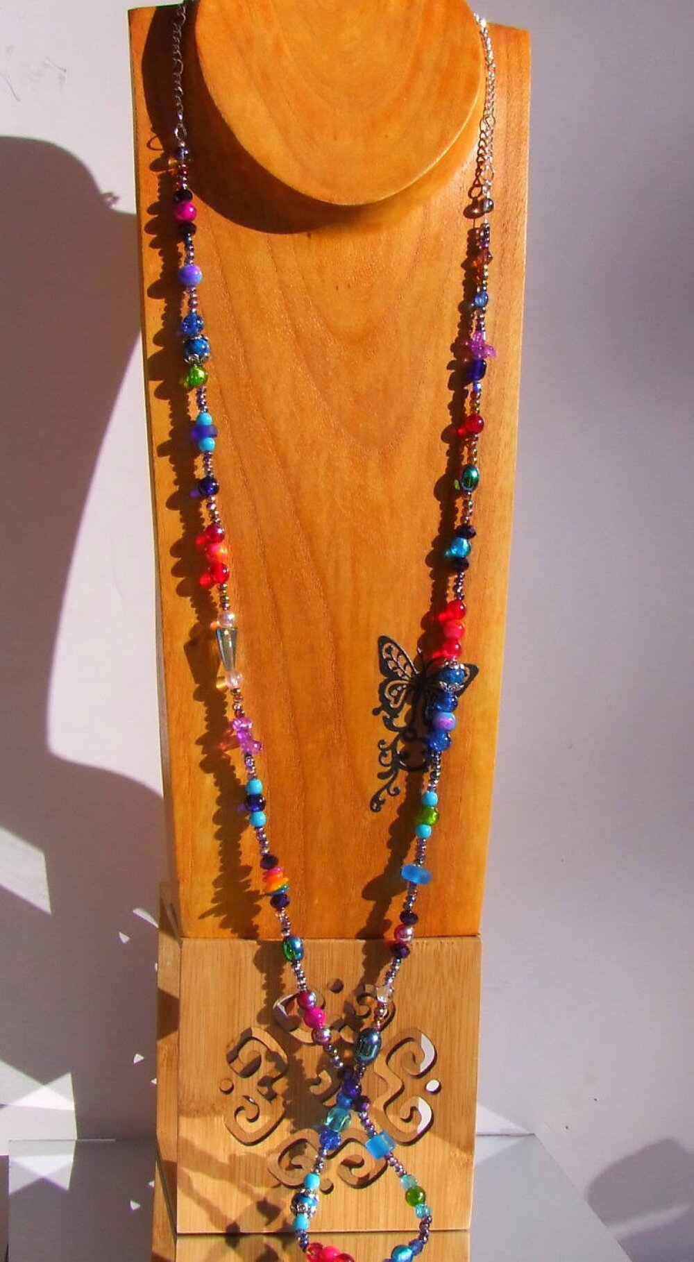 Collier Sautoir de 120 cm / Esprit Bohème / Perles en Verre et Cristal Multicolore Iridescent / Création Unique /Bijou de Créateur Fait Main