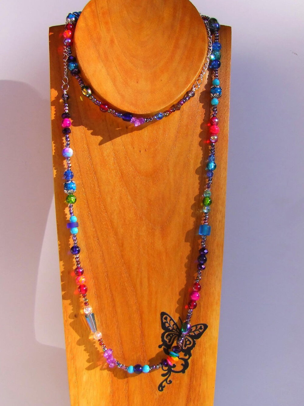 Collier Sautoir Multicolore Tendance Bohème Chic Multicolore Iridescent de 1.20 m de Long