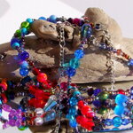 Matériaux : fil d'acier gainé, perles en pâte de verre Italienne, perles de rocailles en verre de bohème, cristal Tchèque, cristal Swarovski, cristal de Bohème, cuivre plaqué argent