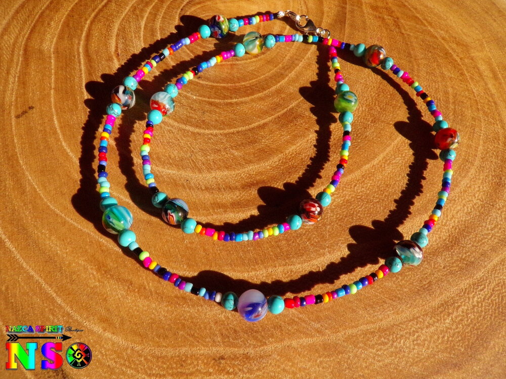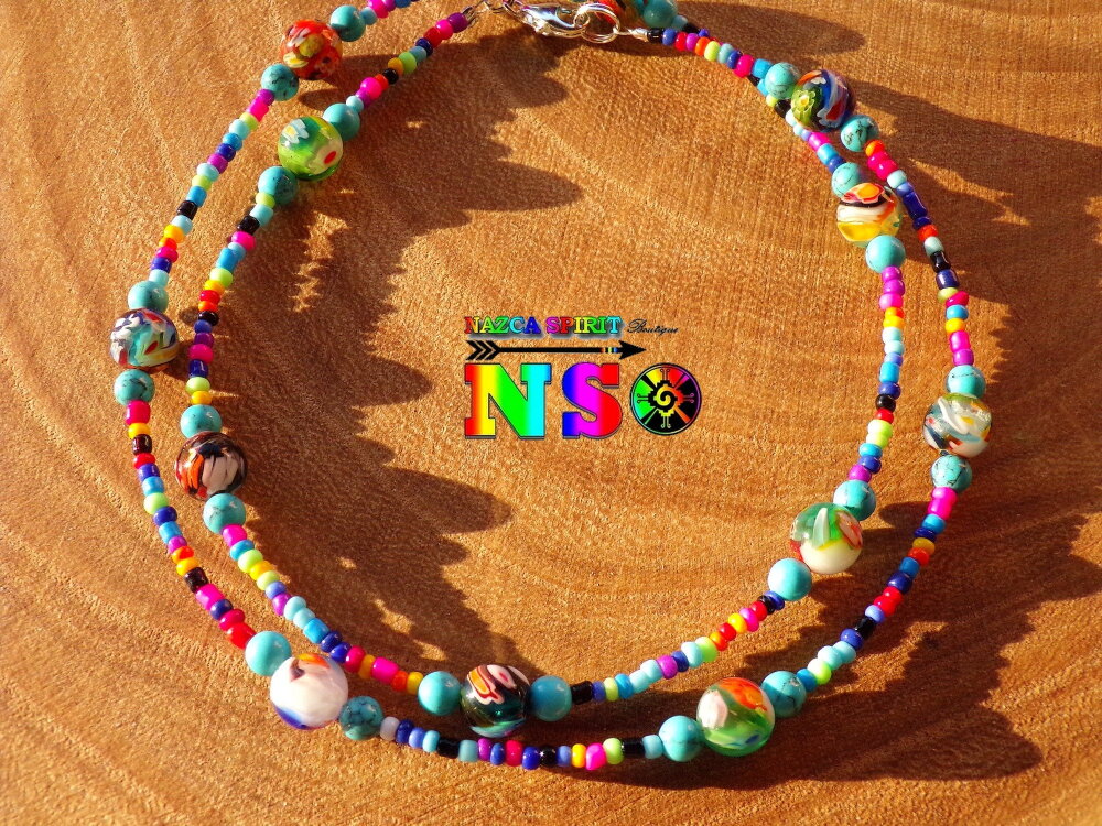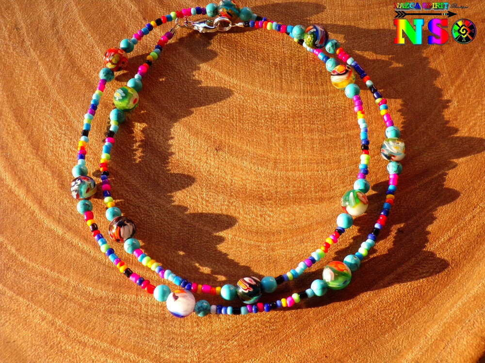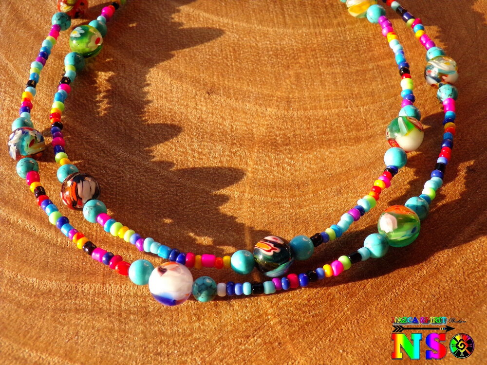 Un bijou tribal très tendance et Ultra vitaminé à porter sans modération en toute occasion et avec n'importe quelle tenue. Ce collier sera d'autant plus mis en valeur porté sur une jolie peau bronzée cet été. Vous pourrez, également, le porter à votre poignet en tant que bracelet à 3 rangs. A vous de le porter comme vous voulez : en collier ou en bracelet