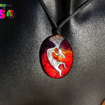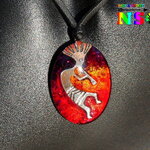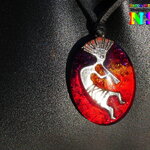 Le pendentif est en verre bombé coloré à la main grâce à un procédé de coloration mis au point par l'Atelier Nazca Spirit et breveté auprès de l'INPI (Institut National de la Protection Industriel) qui est un organisme gouvernemental protégeant les innovations techniques.