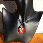 Grâce à ma technique de coloration du verre, les couleurs du pendentif évoluent en fonction de son orientation sous la lumière solaire ou artificielle.