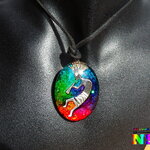 Le pendentif est en verre bombé coloré à la main grâce à un procédé de coloration mis au point par l'Atelier Nazca Spirit et breveté auprès de l'INPI (Institut National de la Protection Industriel) qui est un organisme gouvernemental protégeant les innovations techniques.