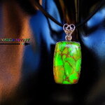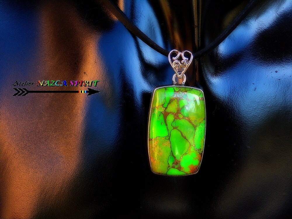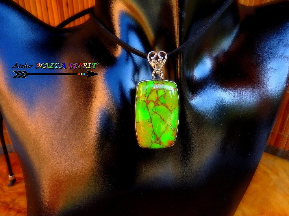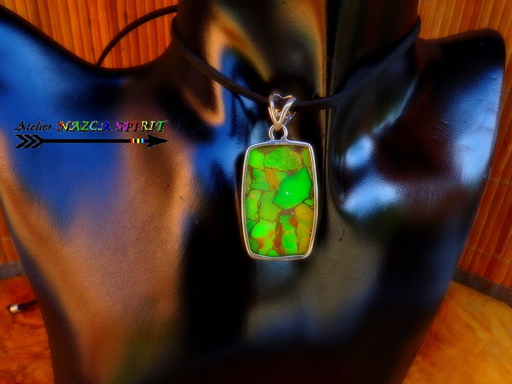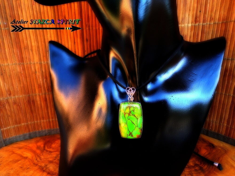 Collier Tribal Ethnique Réglable, Pendentif Argent 925, Turquoise Mohave Verte, Pierre Fine Rectangle