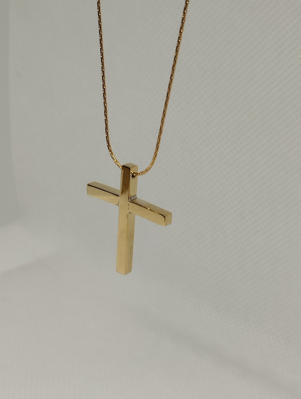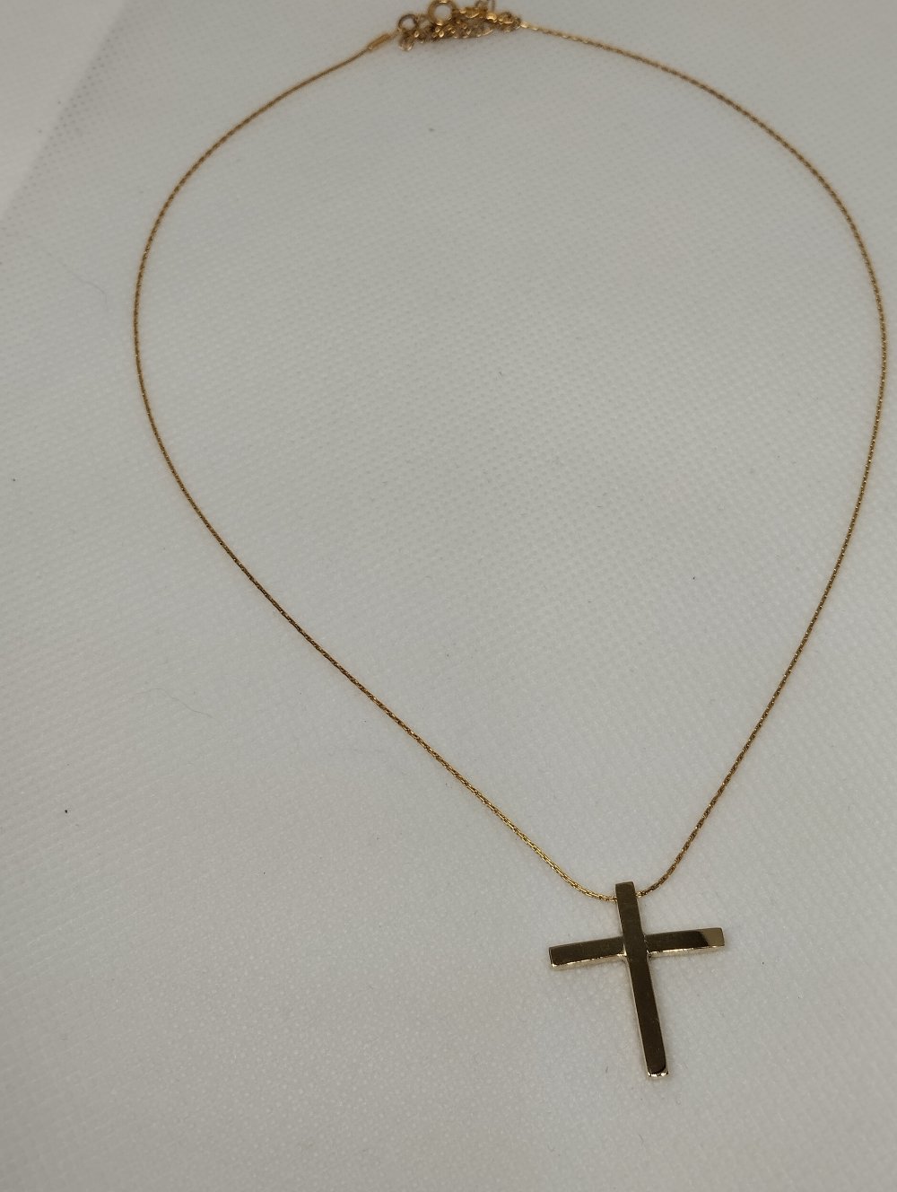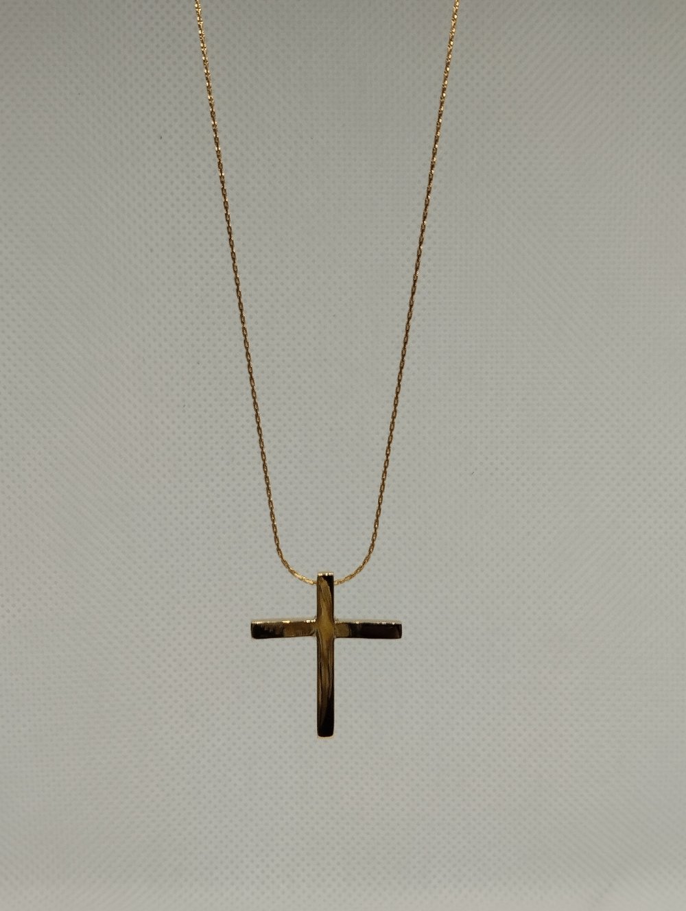 chaîne fine en acier doré et pendentif en laiton brut fait main