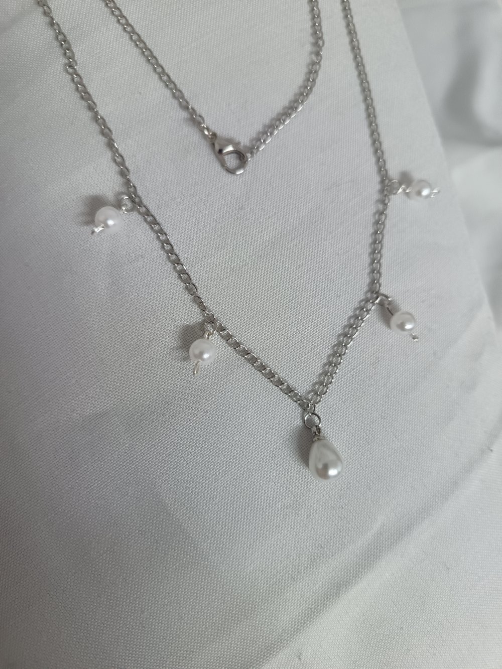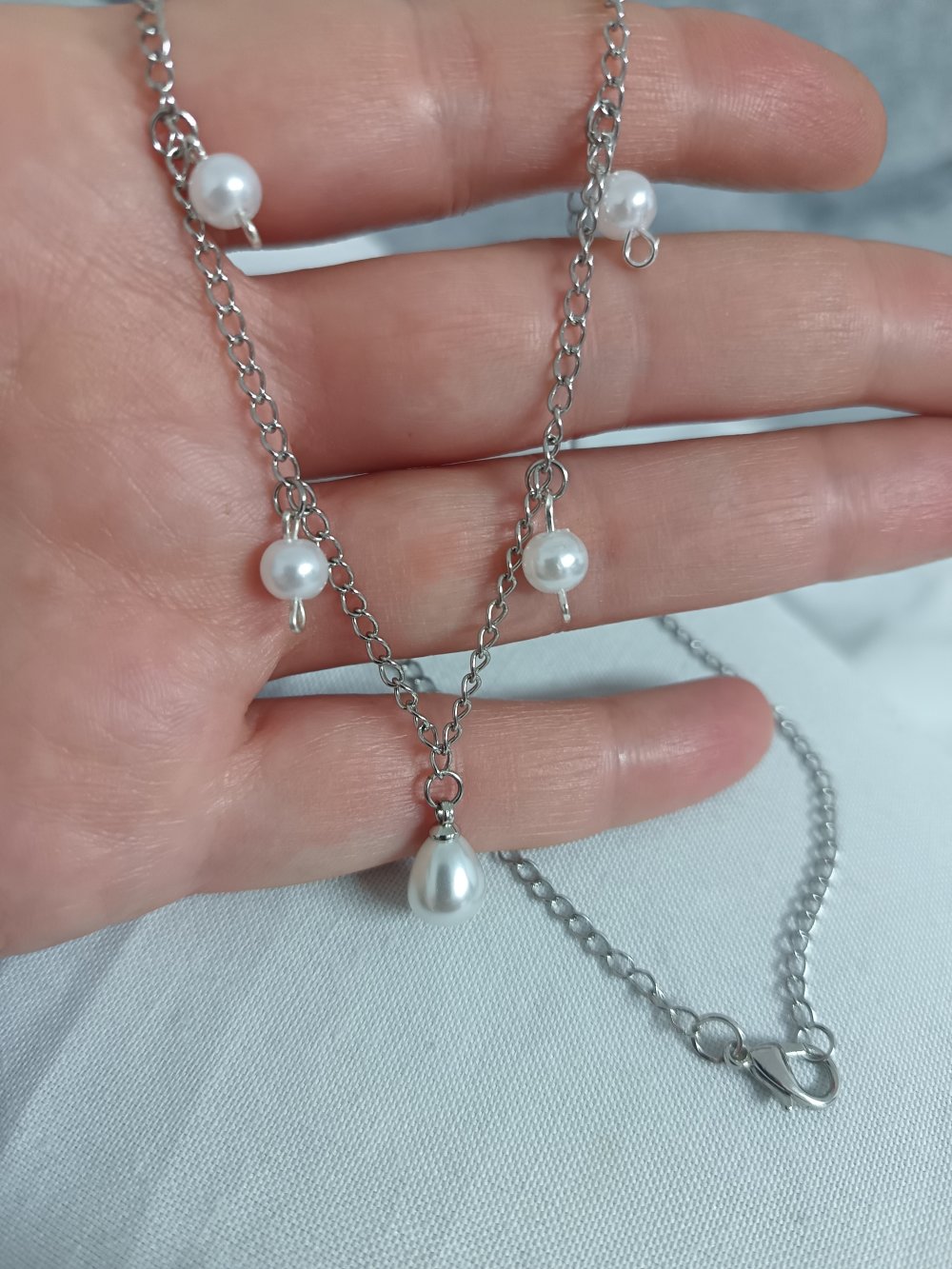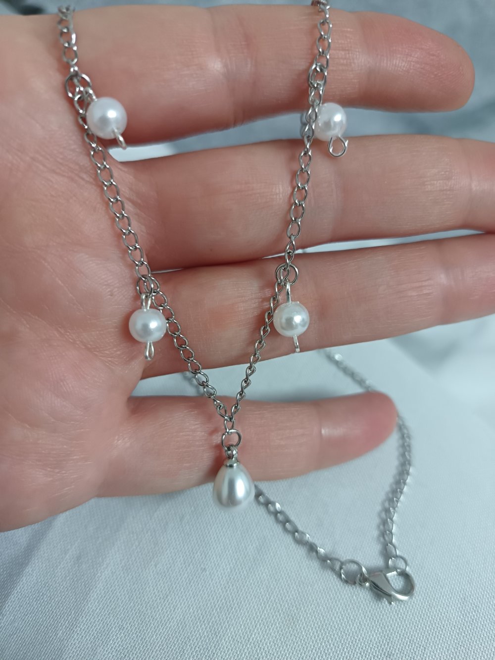 Collier à chaîne en acier inoxydable, collier mi long, accessoire bijou pour femme, collier à perles de larme et blanches