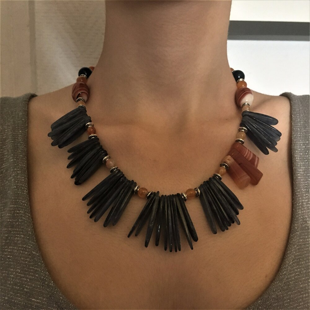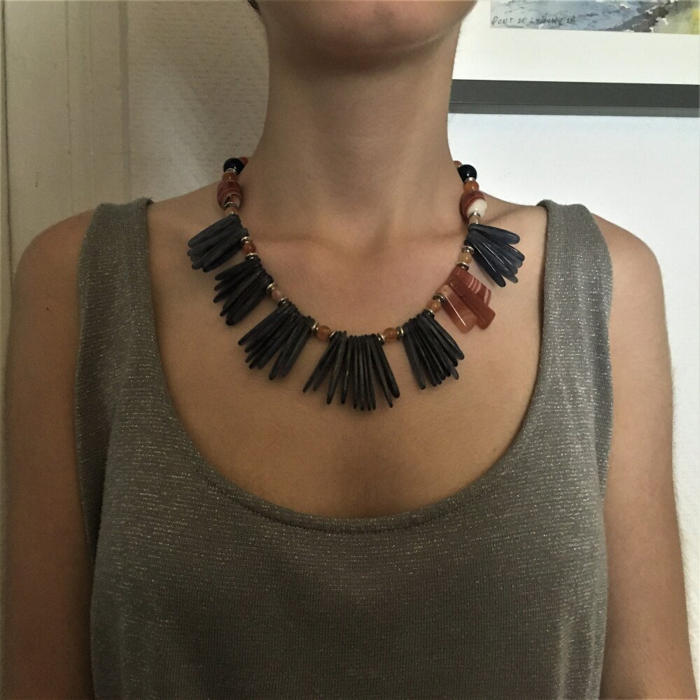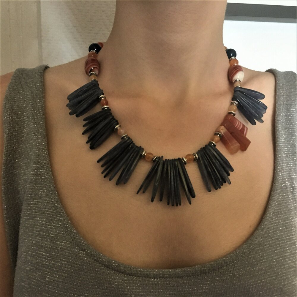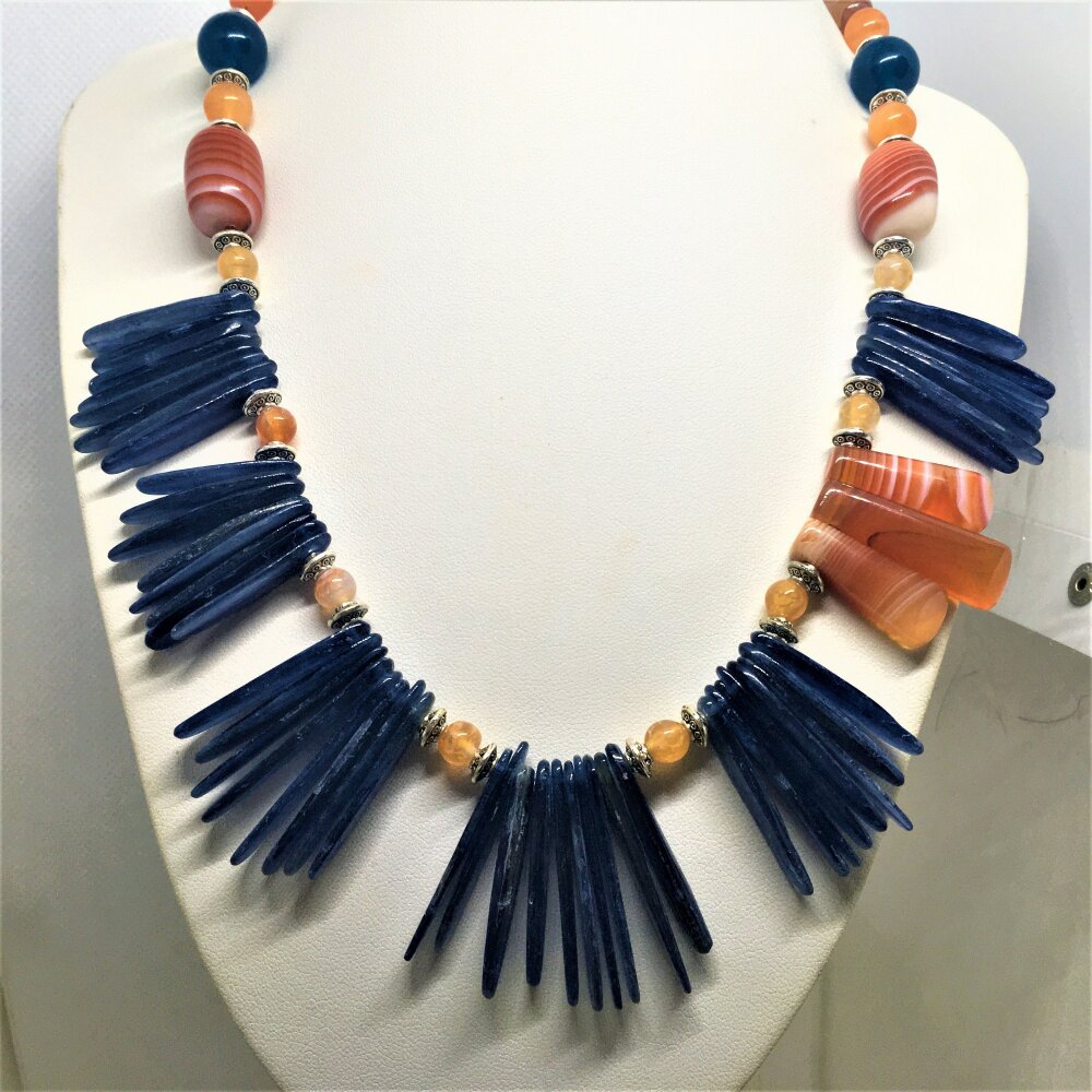 Superbe collier en agate et kyanite. Bijou femme.