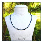 Collier perles japonaises Tila noires marbrées beige mousqueton acier inoxydable doré or fin 24 carats