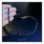 Ce collier est tissé à l'aiguille avec des perles japonaises en verre Miyuki* tila noires marbrées de beige et noir mat (les reflets bleus sont dus à l'éclairage), des perles de rocailles en verre japonaises Miyuki* dorées (+ de 300 perles), il est fermé par un mousqueton en acier inoxydable doré* à l'or fin 24 carats, il mesure 45 cm jusqu'à 50 cm grâce à sa chainette d'extension agrémentée d'une petite breloque étoile tous les 2 en acier inoxydable doré*, il pèse 7 gr.