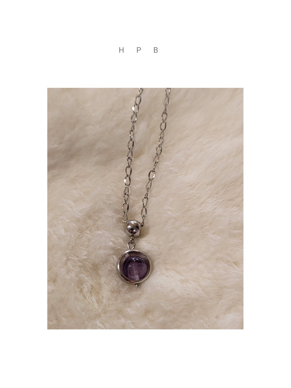 Pendentif améthyste rubanée et chainette en acier inoxydable