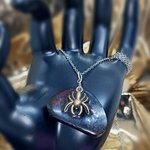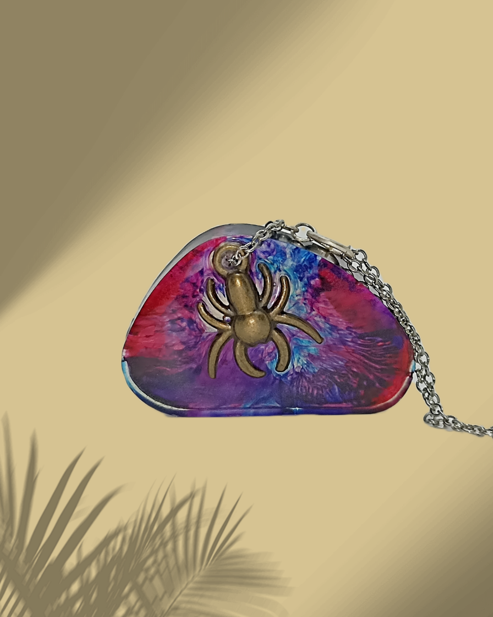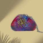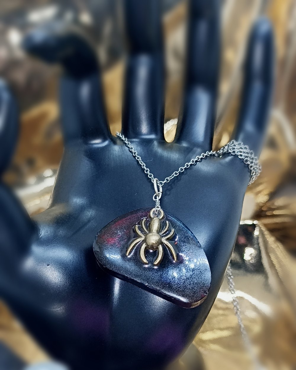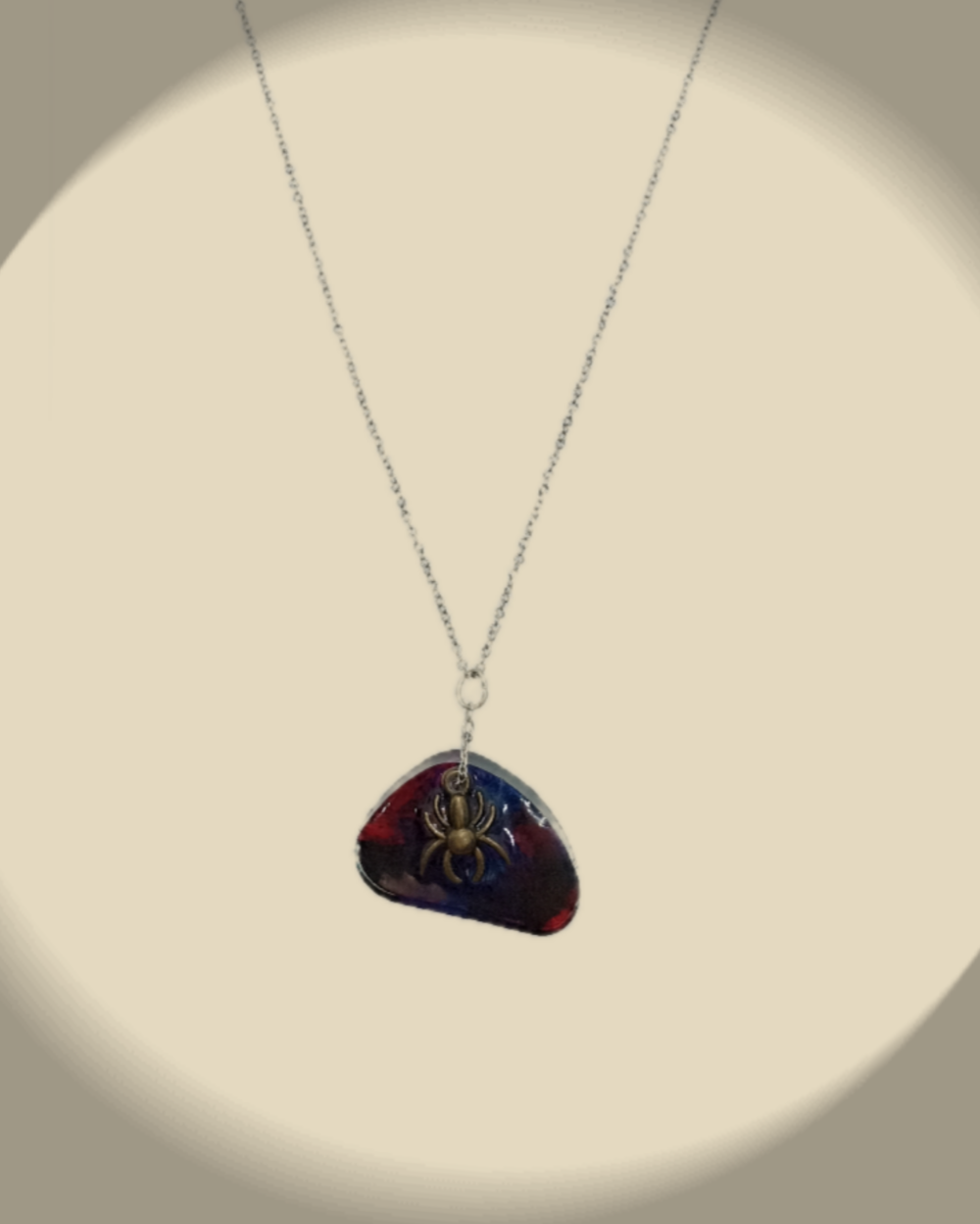 Collier avec pendentif en résine époxy teinté à l'encre agrémenté d'une araignée