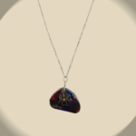 Ce pendentif présente une forme unique, arrondie en forme de galet, coulé avec une résine époxy brillante et teinté avec des encres à l'alcool.