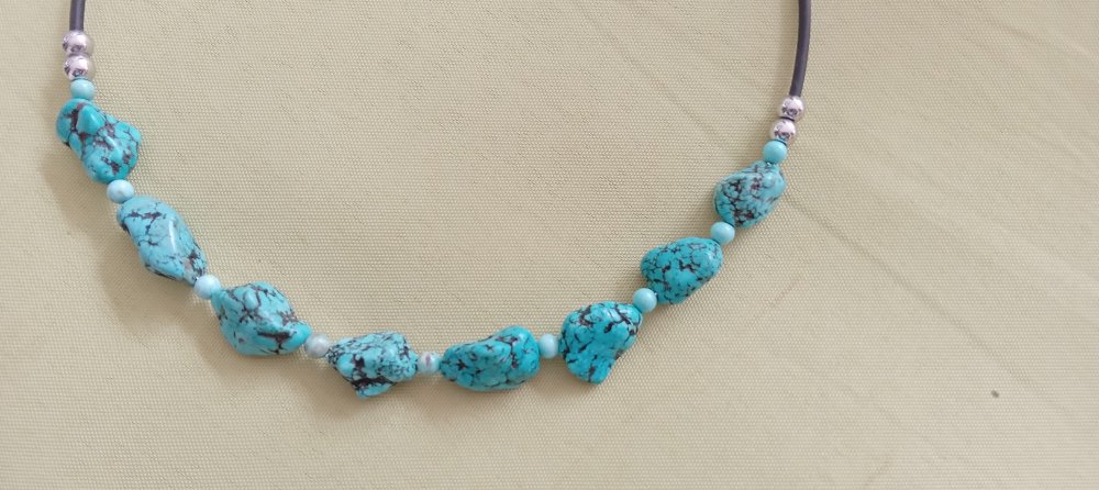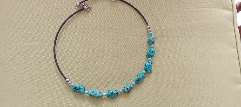 Collier avec turquoise sur le fil métallique qui garde sa forme