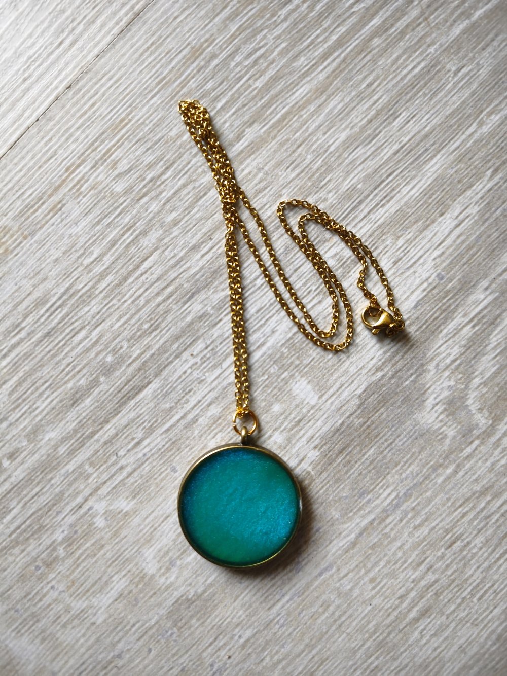 Ce collier " bleu de l'océan", est en résine époxy, appelle à la douceur.
