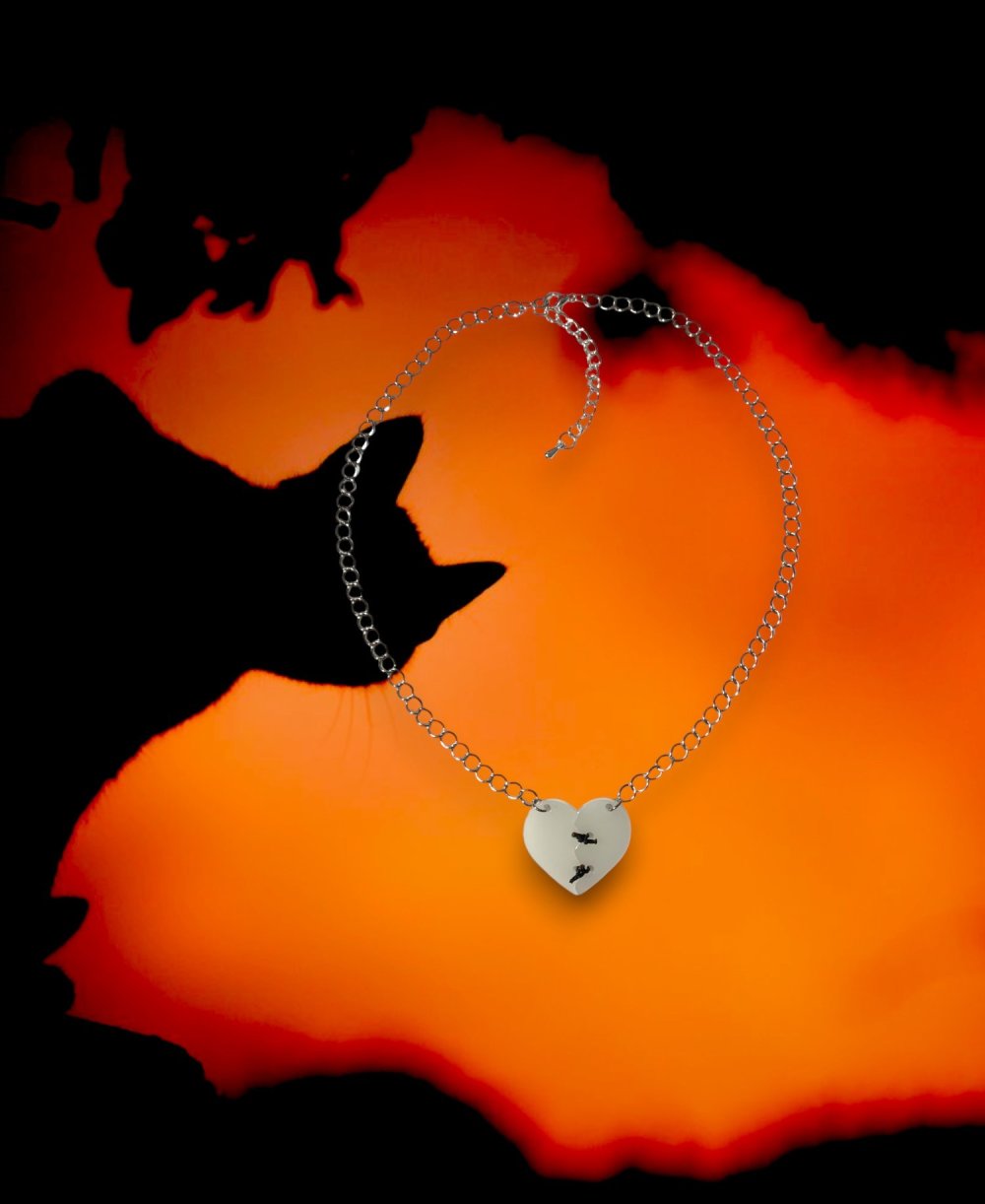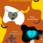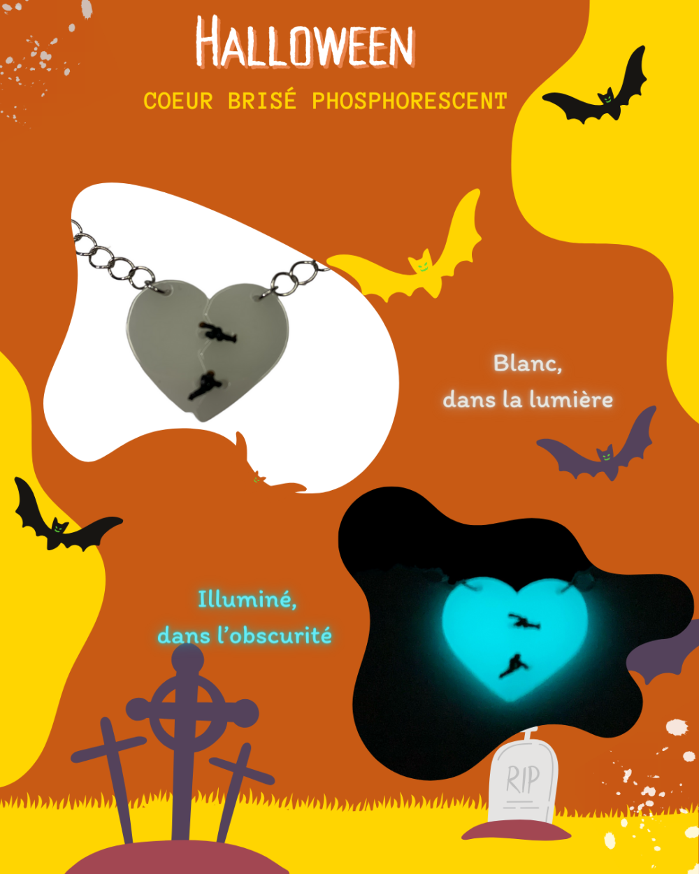 Plongez dans l’ambiance mystique d’Halloween avec ce collier cœur brisé phosphorescent, une création artisanale signée Joia Bijoux – Marseille.