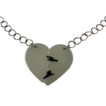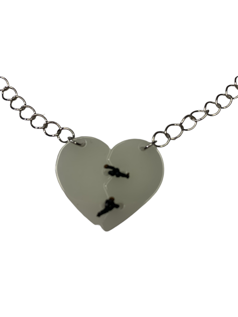 Collier cœur brisé blanc phosphorescent, illuminé dans le noir. Fait main en résine écologique, monté sur chaîne argentée. Idéal pour Halloween ou un look gothique chic.