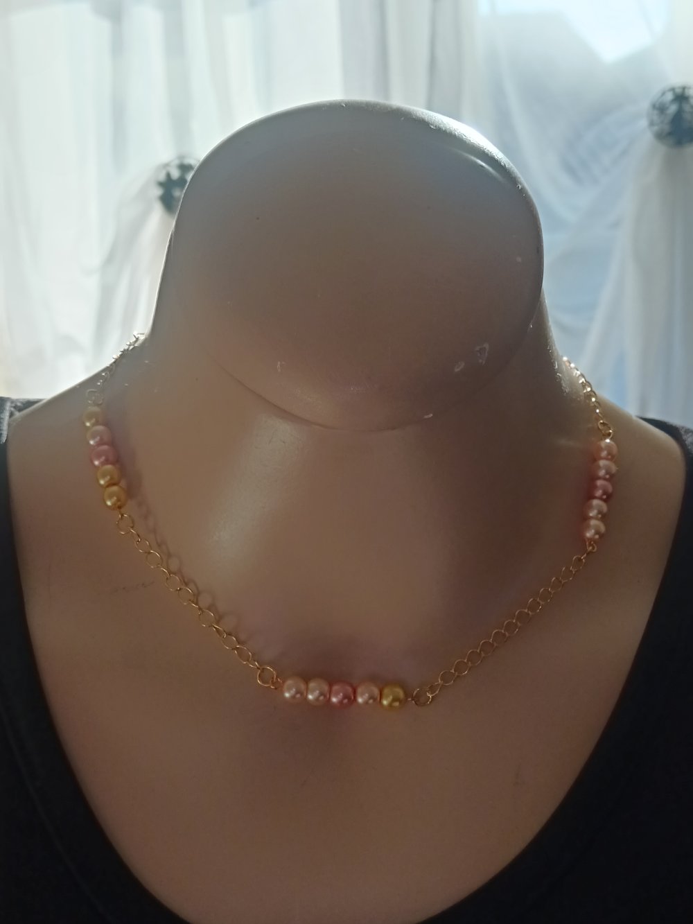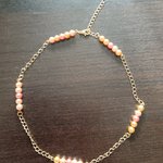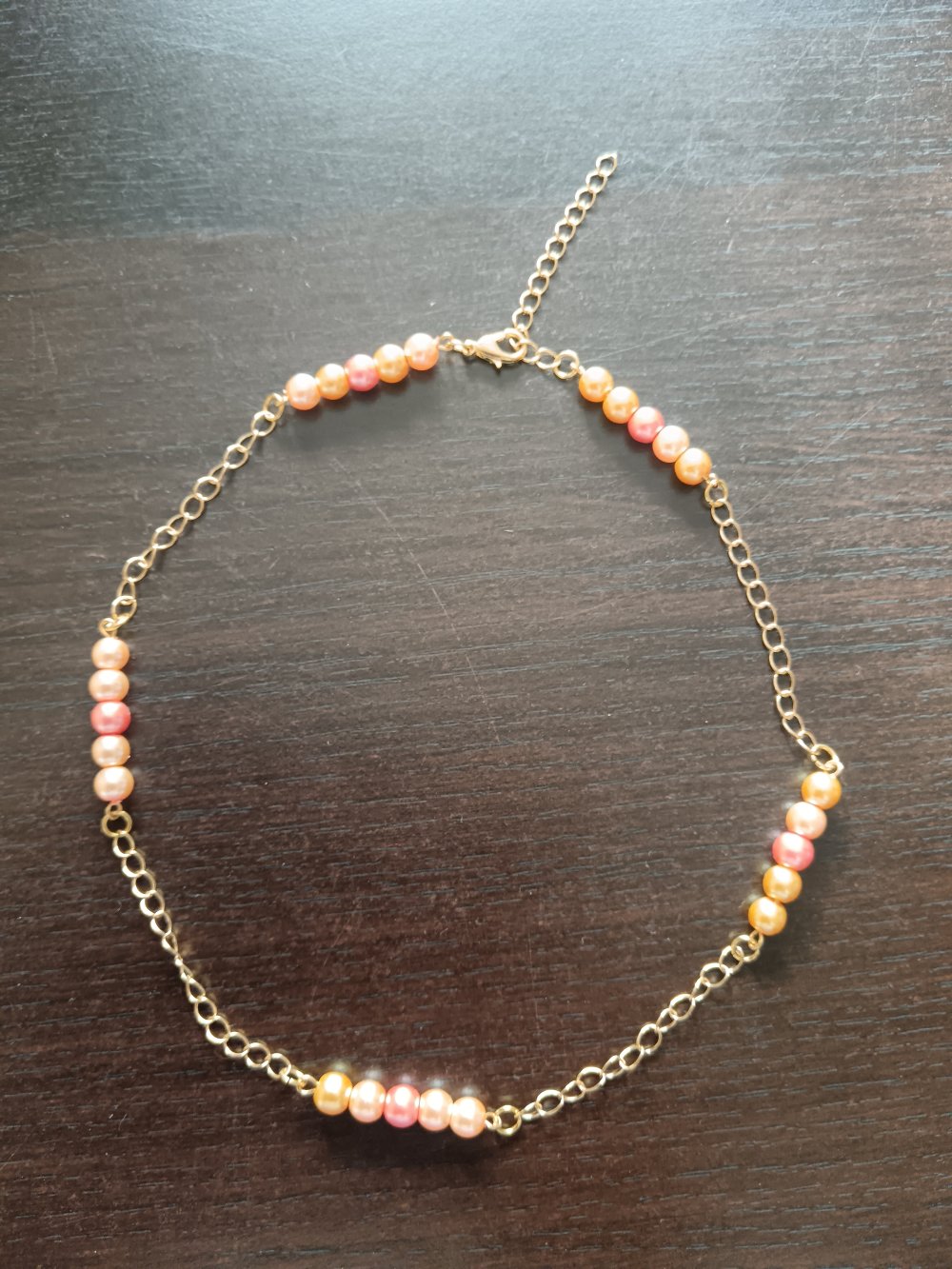 Collier de chaîne dorée et perles de verres orangées intercalées