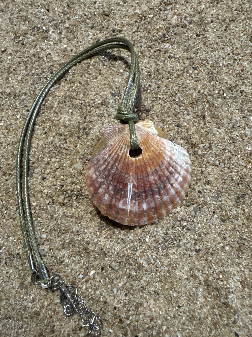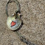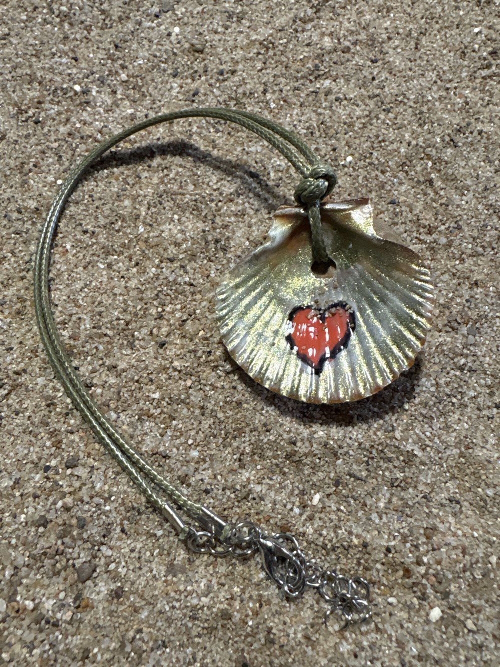 Avec un pendentif coquillage troué par mes soins et peint motif cœur d’amour