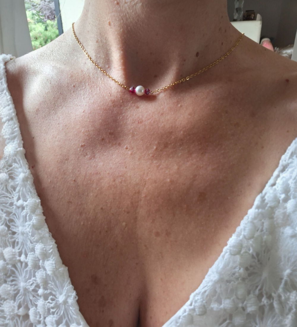 Collier de mariage perles blanches et perles fuchsia – parure de mariée élégante et romantique.