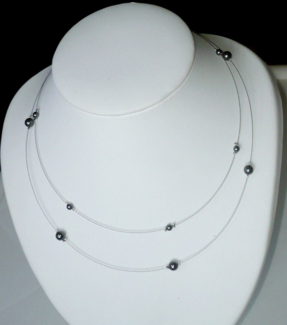 Collier doublon gris foncé style perle tahiti. Bijoux mariage, collier mariée, collier cérémonie.