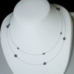 Fabriqué à la main, les bijoux sont surtout fait avec du fil câblé ou nylon, les perles sont en cristal de swarovski, verre de bohème.