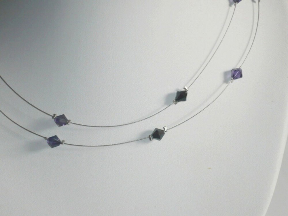 Collier doublon violet et noir. Bijoux mariage, collier mariée, collier cérémonie.