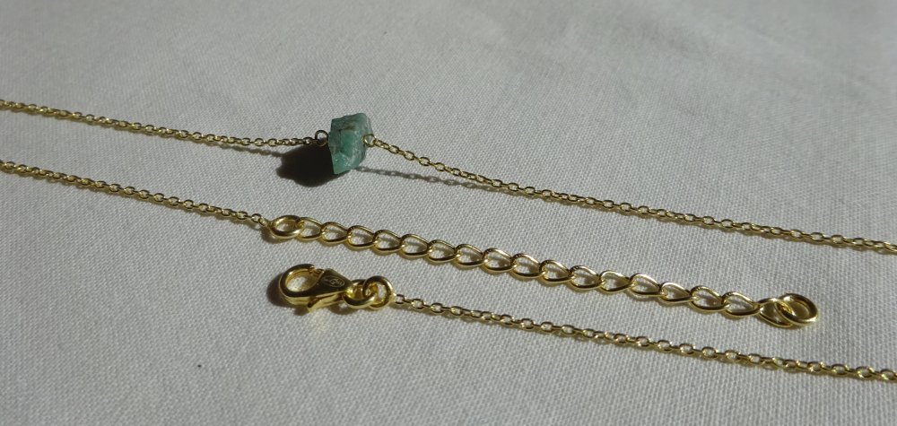 Matières premières : Émeraude naturelle et vermeil ( un alliage noble composé d’argent massif 925 finement recouvert d’or 18 carats )