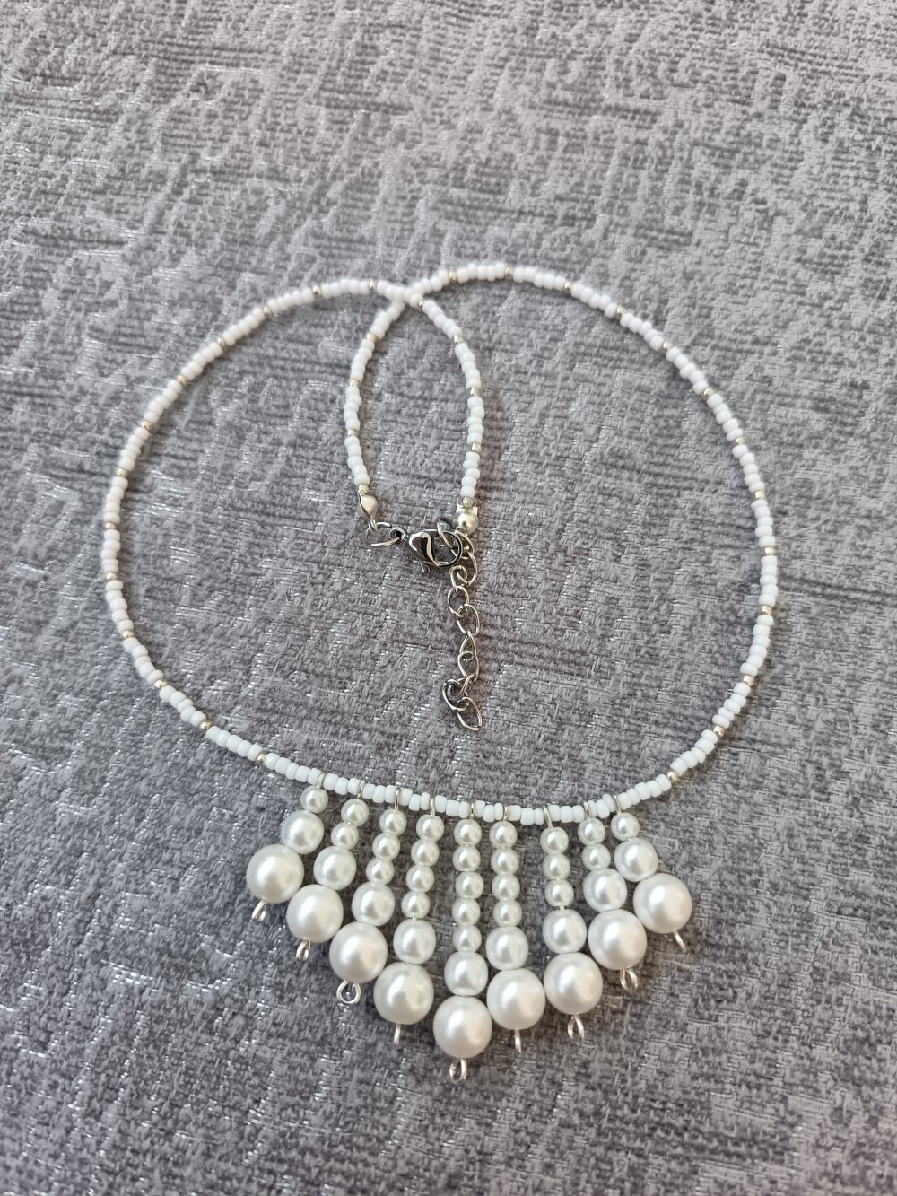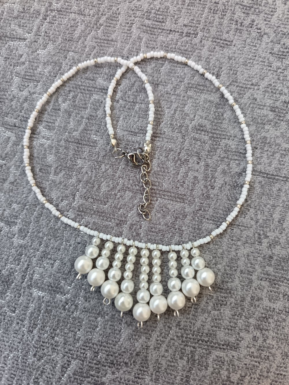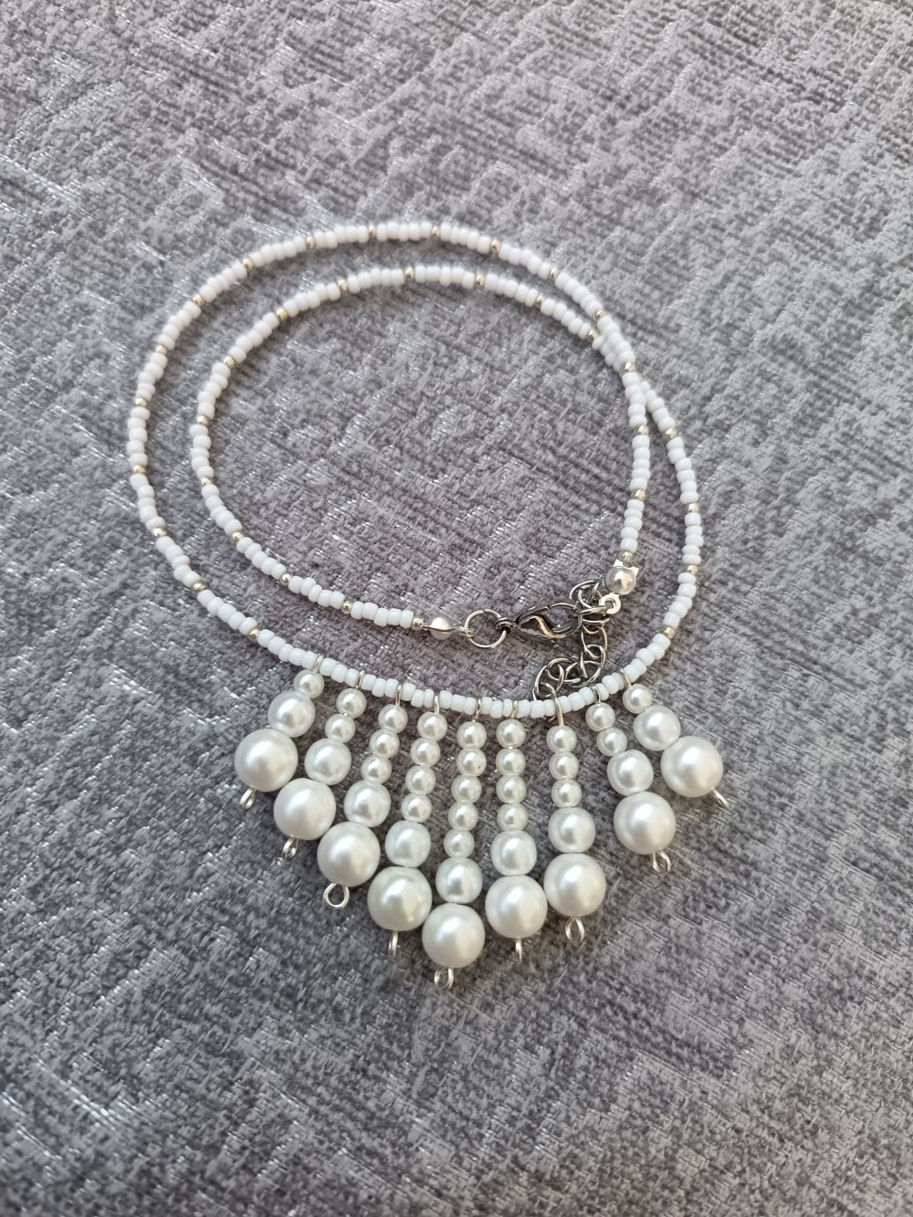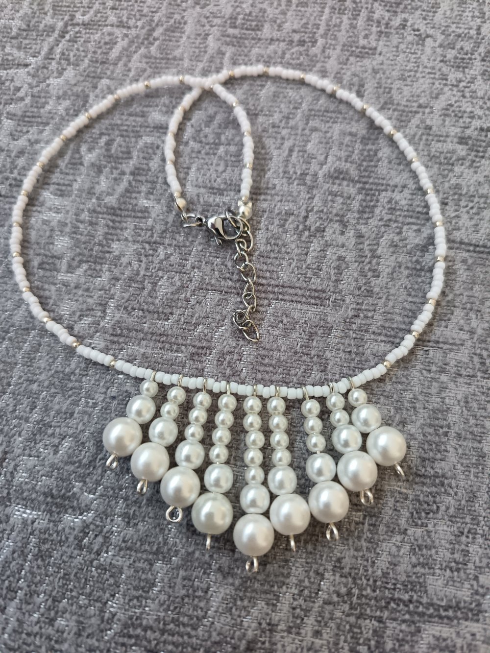 Collier en perles blanches fait main – Ajustable – Style élégant – Neuf