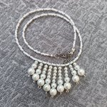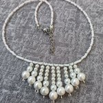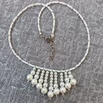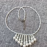 Réalisé avec soin, ce collier associe de fines perles blanches et un joli pendentif en cascade de perles pour un rendu chic et intemporel.