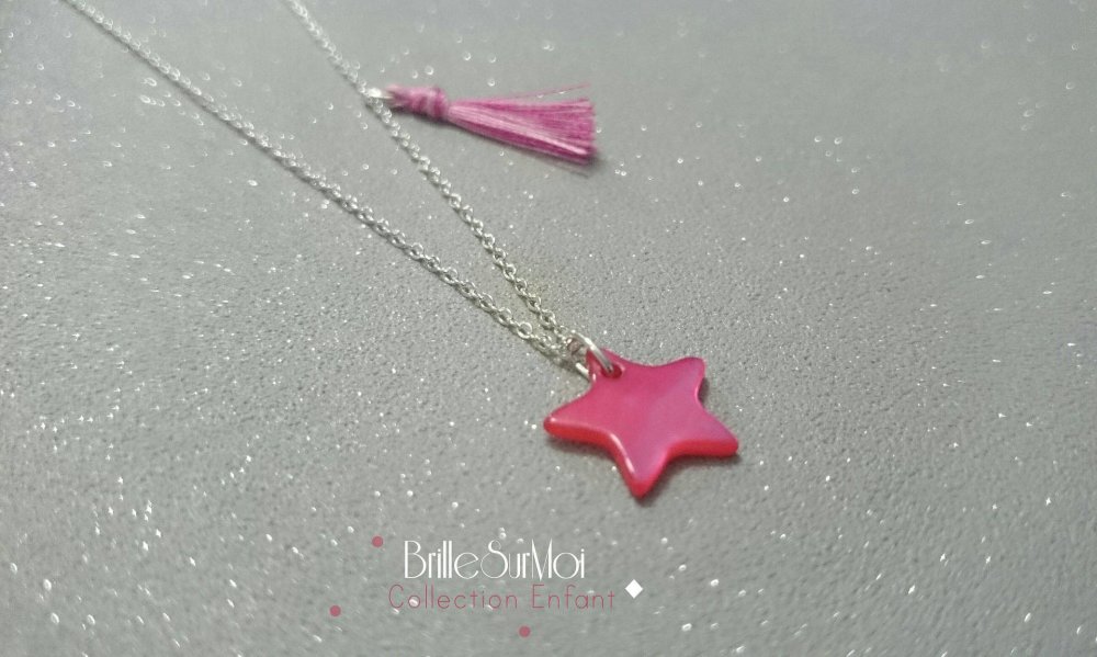 COLLIER ENFANT ARGENT 925 ETOILE NACRE ET POMPOM BRILLE SUR MOI