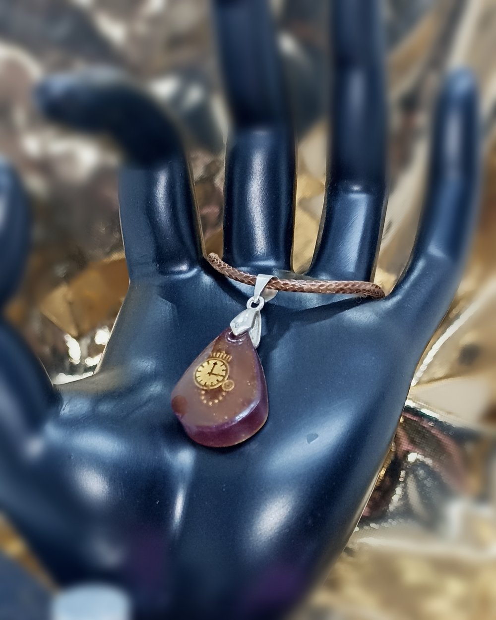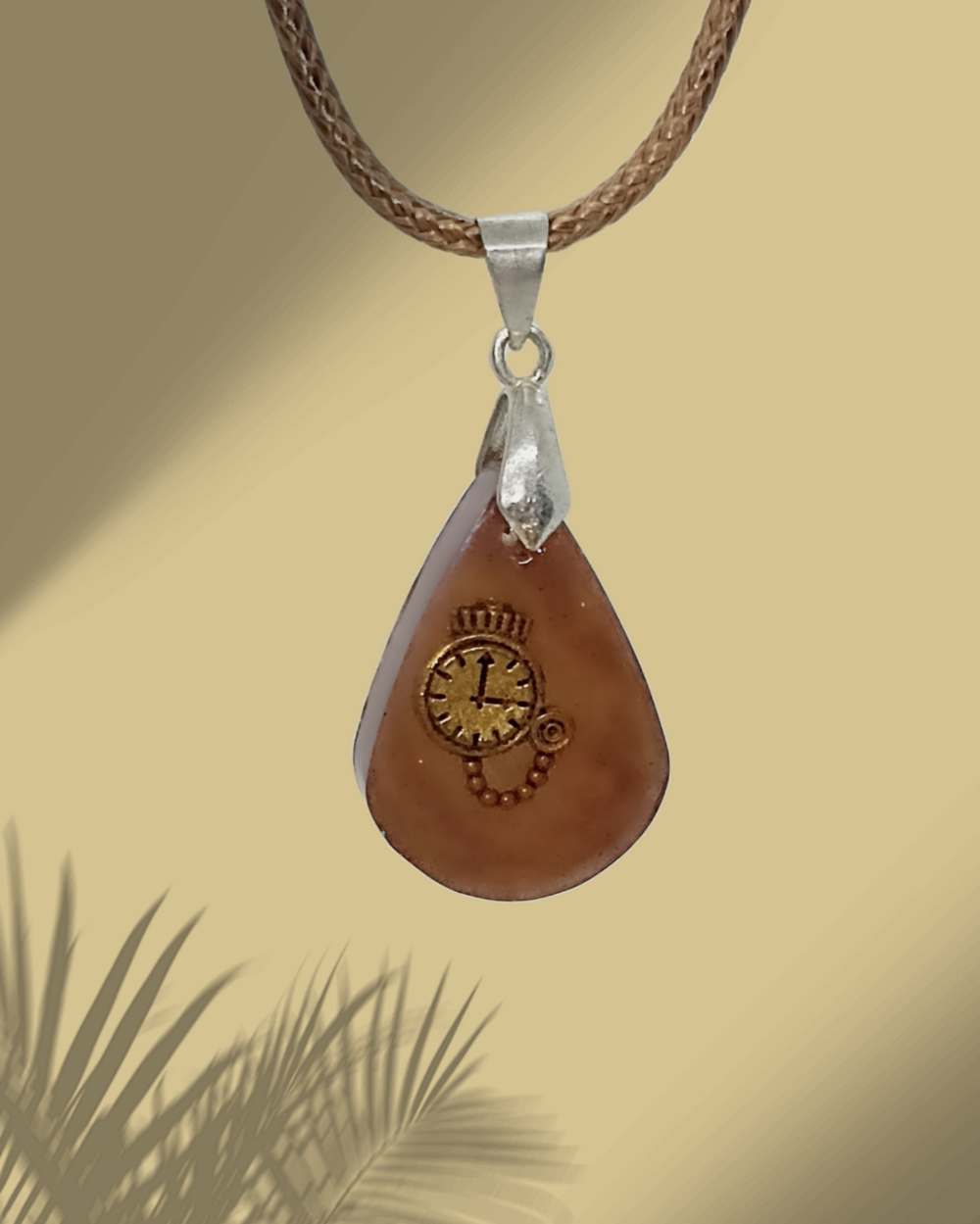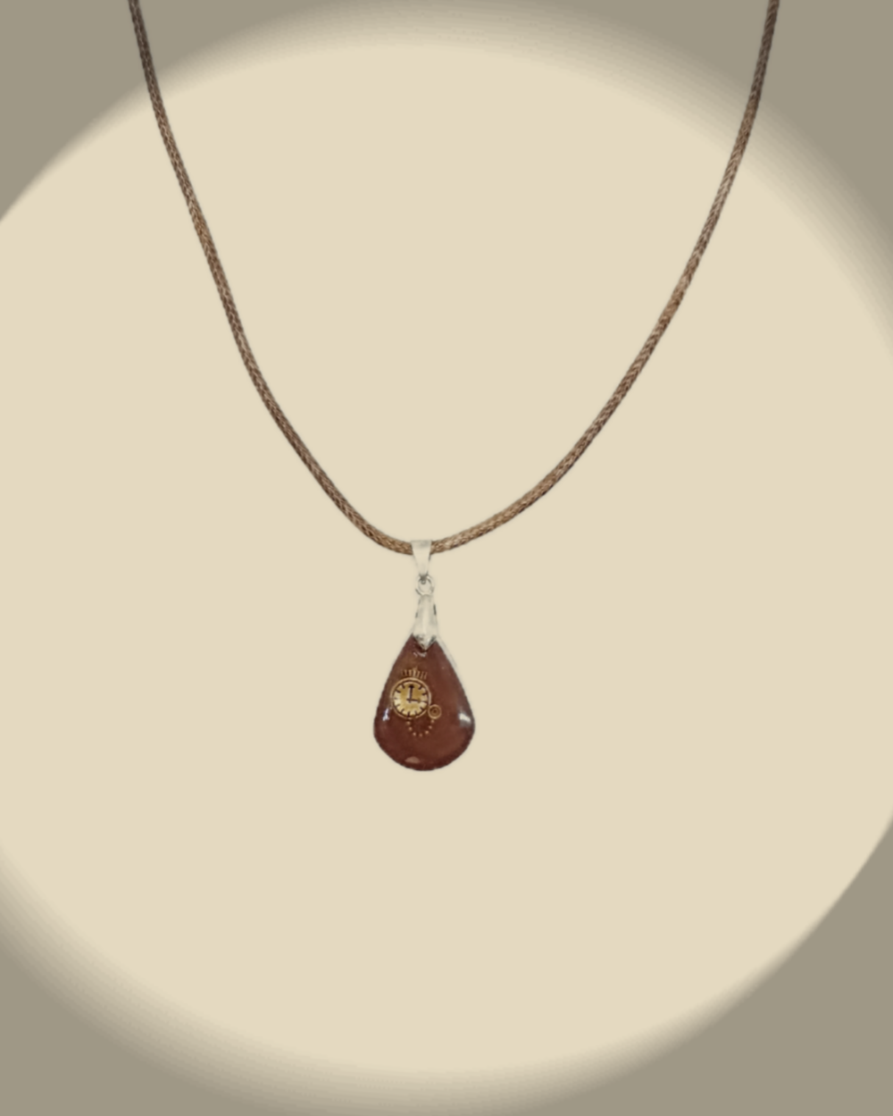 Collier avec pendentif en résine époxy marron