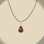 Ce pendentif arbore une élégante forme de goutte d'eau. Sa couleur dominante, le brun profond ambré, est réalisé par la poudre de mica mélangée à la résine.