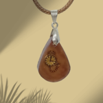 Le pendentif est suspendu à un cordon tressé en similicuir de couleur marron, qui renforce le côté aventurier et vintage du bijou. Le raccord avec la bélière argentée assure une finition soignée.