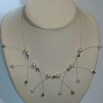 Composé ronde nacré 6 et 8 mm et toupie 6 mm en cristal de swarovski,, sur fil câblé argenté. sans nickel.