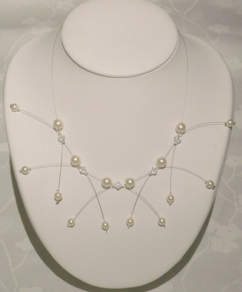Collier étincelle ivoire et cristal n°1. Bijoux mariage, collier mariée, collier cérémonie.
