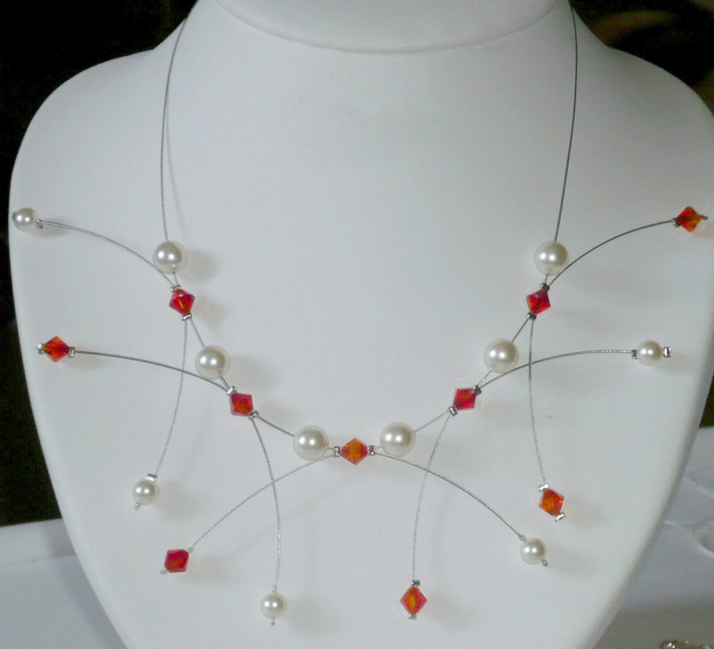 Collier étincelle ivoire et orange n°1. Bijoux mariage, collier mariée, collier cérémonie.