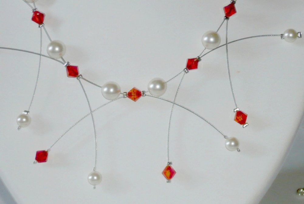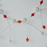 Fabriqué à la main, les bijoux sont surtout fait avec du fil câblé ou nylon, les perles sont en cristal de swarovski, verre de bohème.