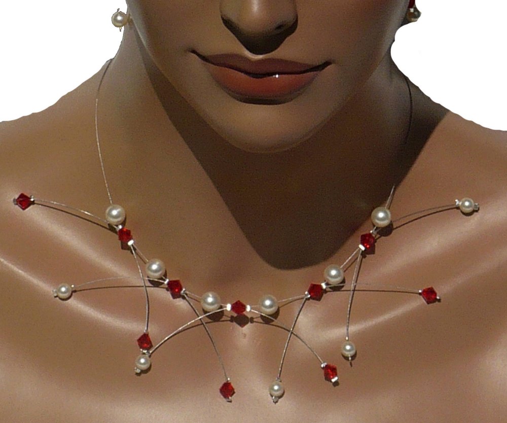 Collier étincelle ivoire et rouge n°2. Bijoux mariage, collier mariée, collier cérémonie.
