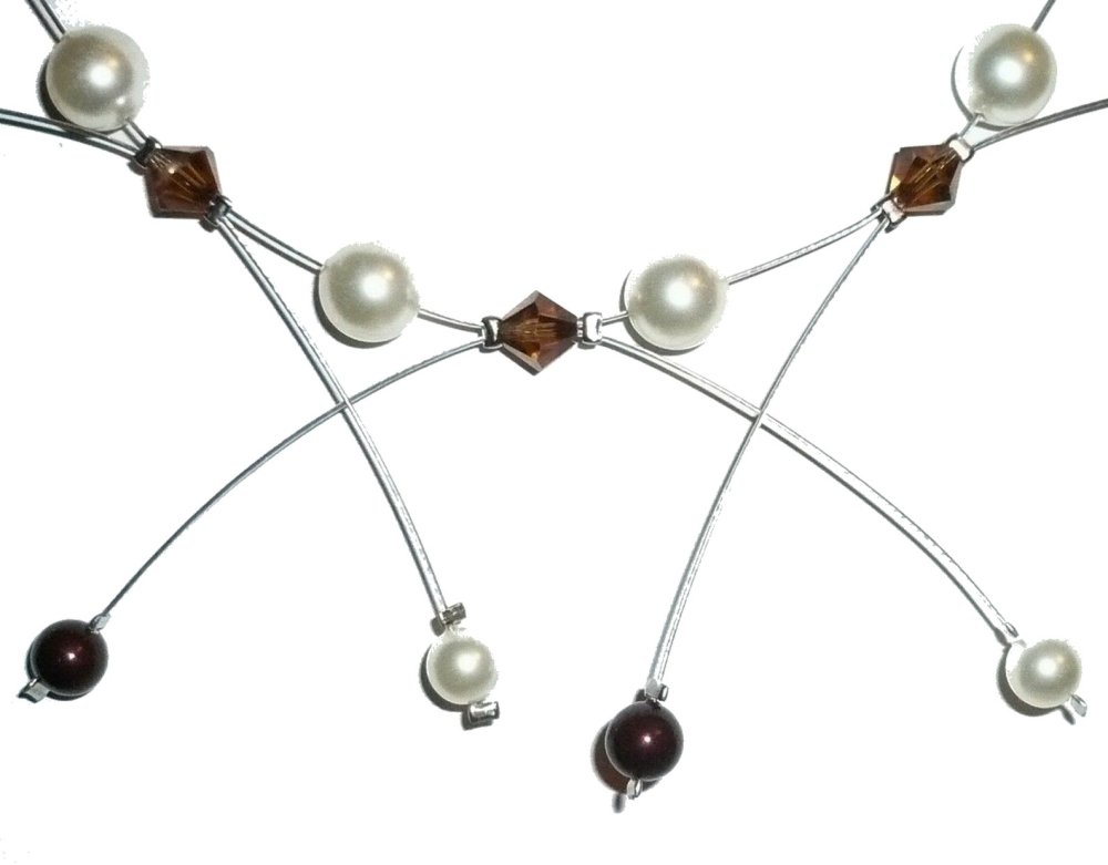 Collier étincelle marron et ivoire n°3. Bijoux mariage, collier mariée, collier cérémonie.