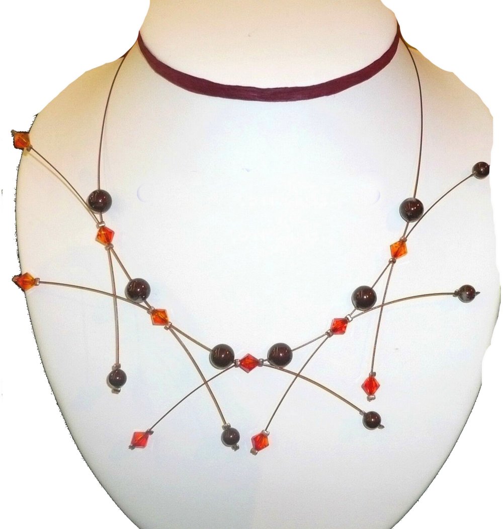 Collier étincelle marron et orange.